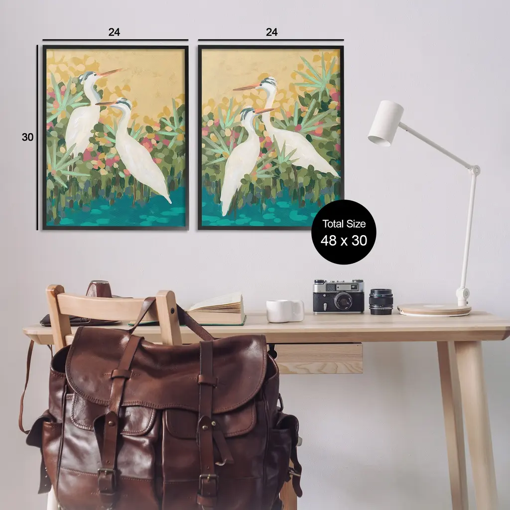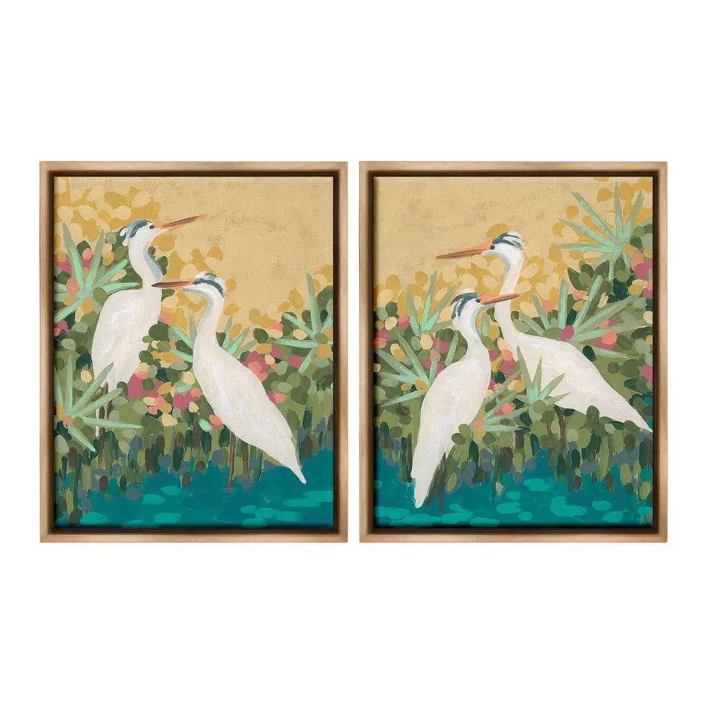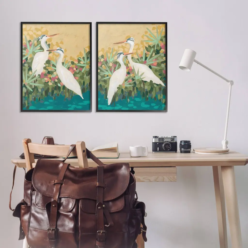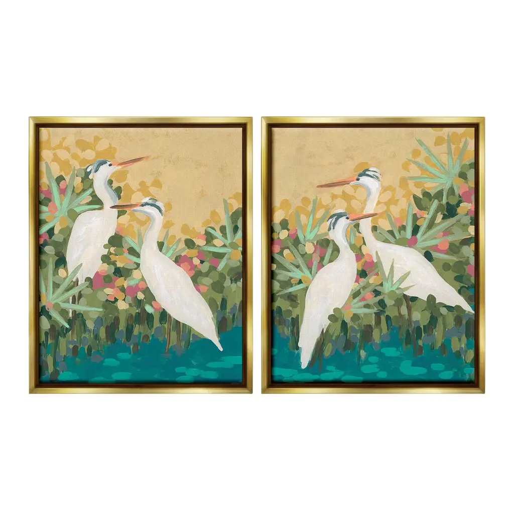 Fill any space in your home or office with our Framed Wall Art Sets. Our framed artwork is securely mounted into a 1.5-inch thick wood grain frame and ready to hang. Frames are available in three alluring styles: black, gray farmhouse and white. Stupell Wall Art is made in the USA.Features: Dimensions: 2 Piece Set, Each Panel is 11 x 1.5 x 14 FramedTwo Piece Framed Giclee Sets are available as 11"x14", 16"x20" or 24"x30" Panels. All Framed Giclee Products have a 1.5" Depth.Wall Art is Ready to Hang with Hardware Free Hanging. No installation required. For Easy Set Up Lean or Layer Artwork on Shelf or Against Wall.Curated Wall Art Sets make it easy for you complete the theme for any room. Our giclée prints are carefully mounted on a durable MDF backing, and then perfectly finished in a 1.5 inch thick woodgrain frame. Mounted frame colors include black, gray farmhouse and white. Made In USA.Artwork Relates To: Animal, Bird, Waterfowl, Painting, Crane Bird, Egret, Heron, Nature, Pond, River, Abstract, ModernDesign by June Erica Vess
