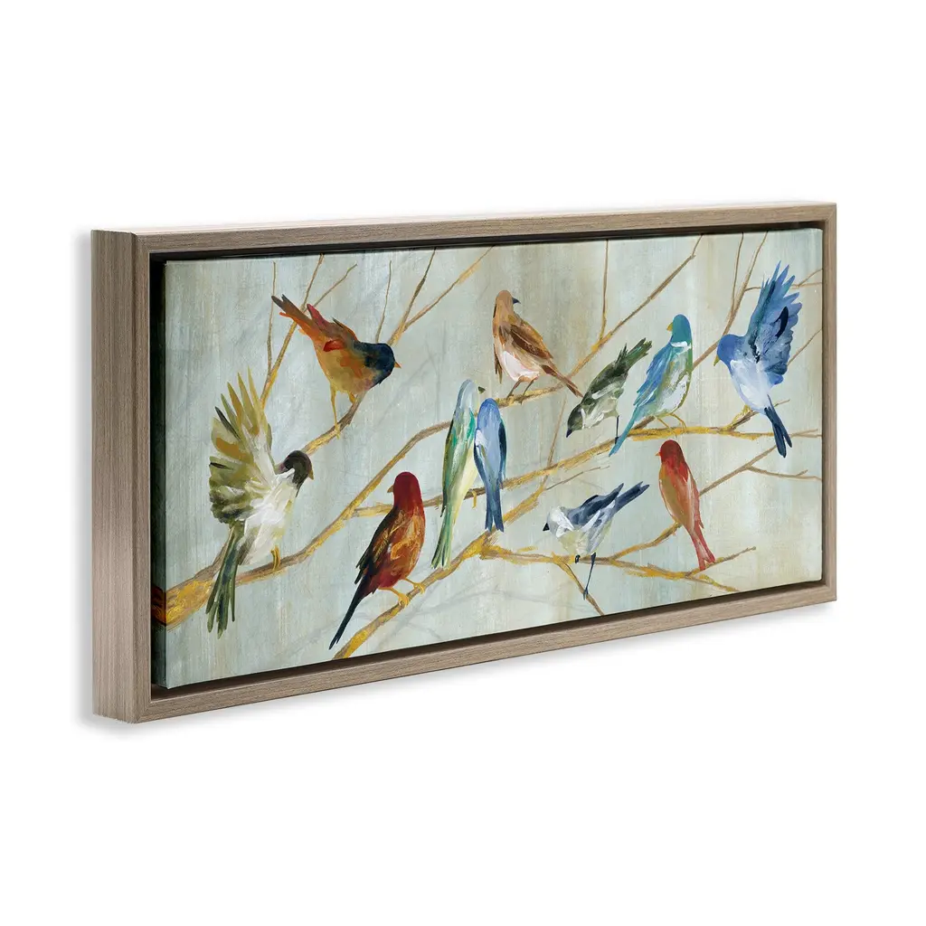 Elevate your home or office to the next level with Stupell Framed Floating Canvas Wall Art. Our premium hand-stretched canvas is mounted securely into a sturdy lightweight frame. The museum-style gap between the wrapped canvas and the box frame gives the illusion of floating artwork. Stupell Wall Art is made in the USA.Features: Dimensions: 25 x 1.7 x 11 Frame, 24 x 1.5 x 10 Canvas ArtFloating Frame Canvas Products are available in sizes 25"x11" and 31"x14". All Floating Frame Canvas Products have a 1.7" Depth.Wall Art is Ready to Hang with Hardware Free Hanging. No Installation required. For Easy Set Up Lean or Layer Artwork on Shelf or Against Wall. Artwork is Permently Fixed into the Frame.Our elevated 1.7" Thick Floating Frame is the perfect complement to our canvas style Wall Art. We use only the highest quality inks in house with industry leading printing solutions. Canvas is hand stretched over a durable wood foundation and then mounted securly into a Modern Box Frame. Made in the USA.Artwork Relates To: Animal, Bird, Nature, Painting, Traditional, Woodland, Forest, Branch, TreeDesign by Carol Robinson