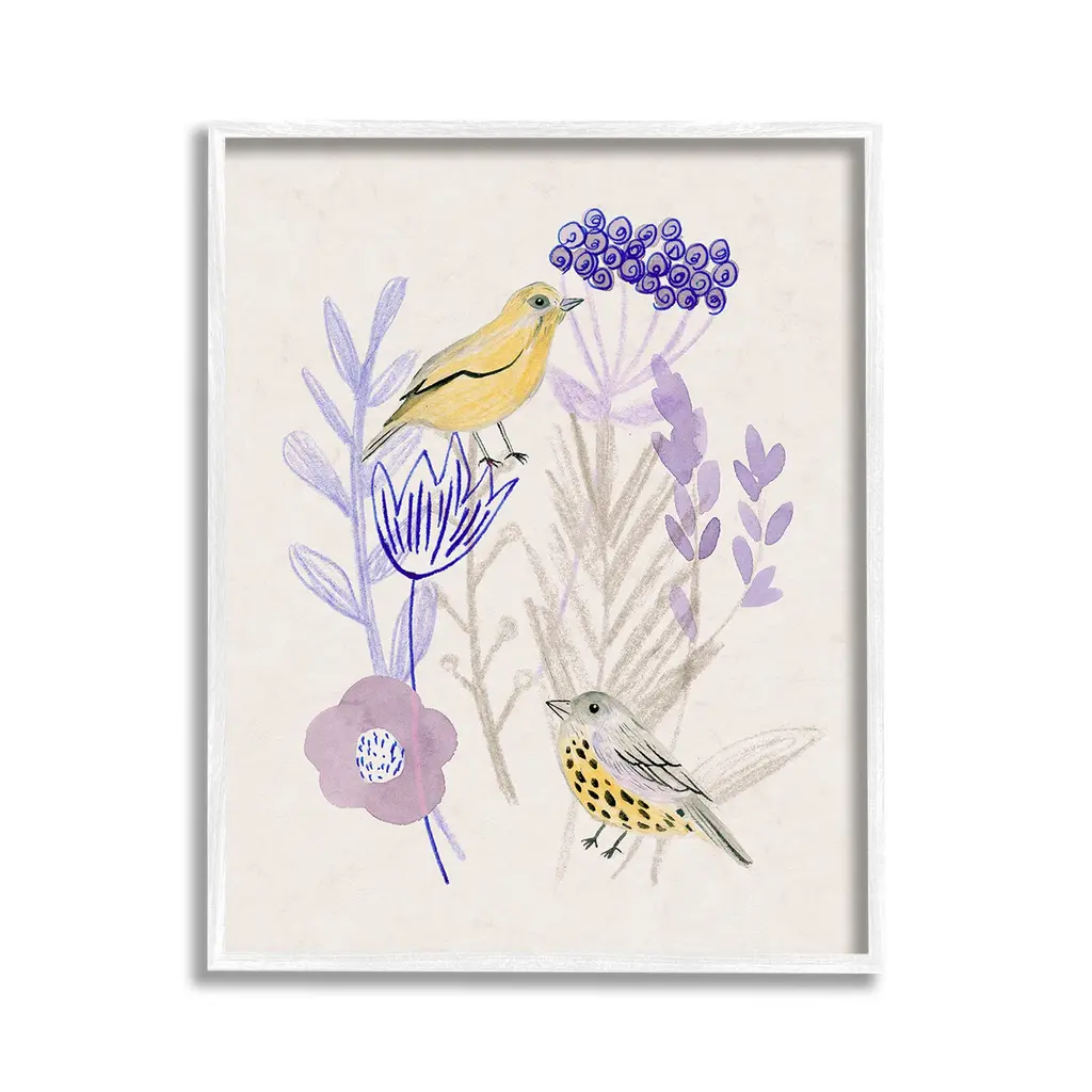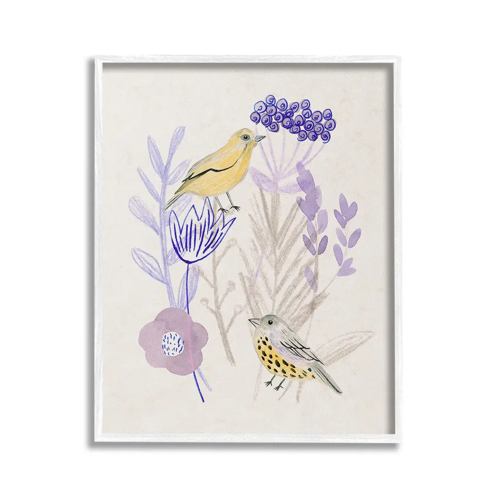 Add dimension to any room with our textured Framed Giclee Artwork. Our framed artwork is securely mounted into a 1.5-inch thick wood grain frame and ready to hang. Frames are available in three alluring styles: black, gray farmhouse and white. In addition, you should check out our oversized options if you want a statement piece. Stupell Wall Art is made in the USA.Features: Dimensions: 11 x 1.5 x 14 FramedFramed Giclee Products are available in the sizes 11"x14", 16"x20" or 24"x30". All Framed Giclee Products have a 1.5" Depth. Wall Art is Ready to Hang with Hardware Free Hanging. No installation required. For Easy Set Up Lean or Layer Artwork on Shelf or Against Wall.Our giclée prints are carefully mounted on a durable MDF backing, and then perfectly finished in a 1.5 inch thick woodgrain frame. Mounted frame colors include black, gray farmhouse and white. Made In USA.Artwork Relates To: Animal, Bird, Finch, Canary, Flower, Plant, Floral, Abstract, Cottage, NatureDesign by Melissa Wang