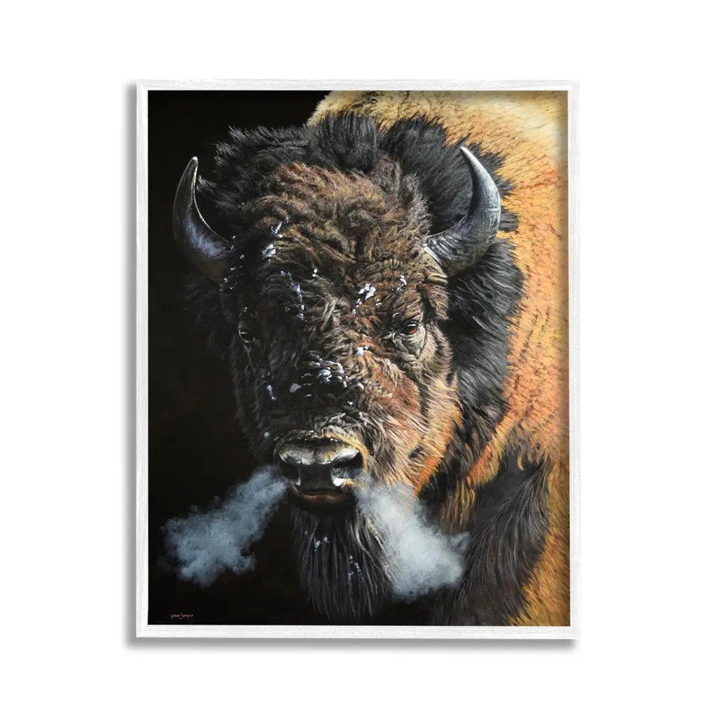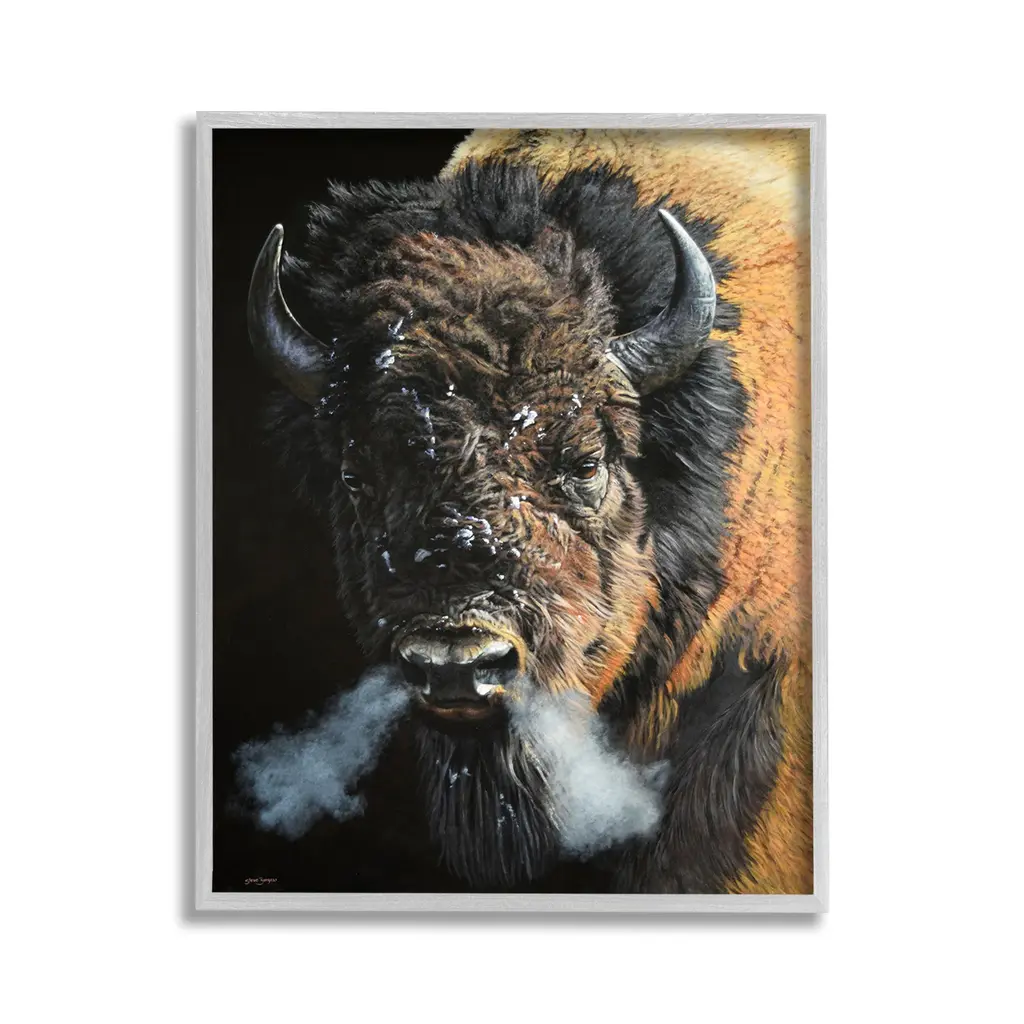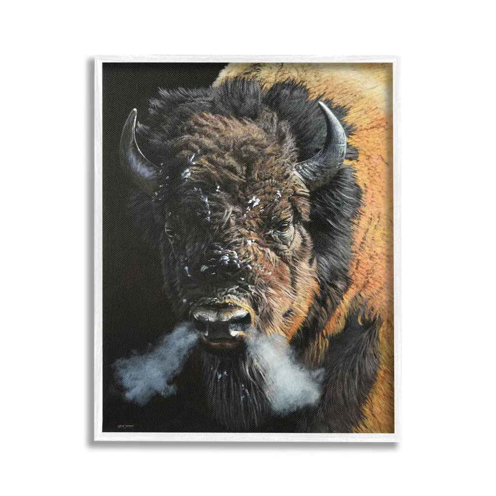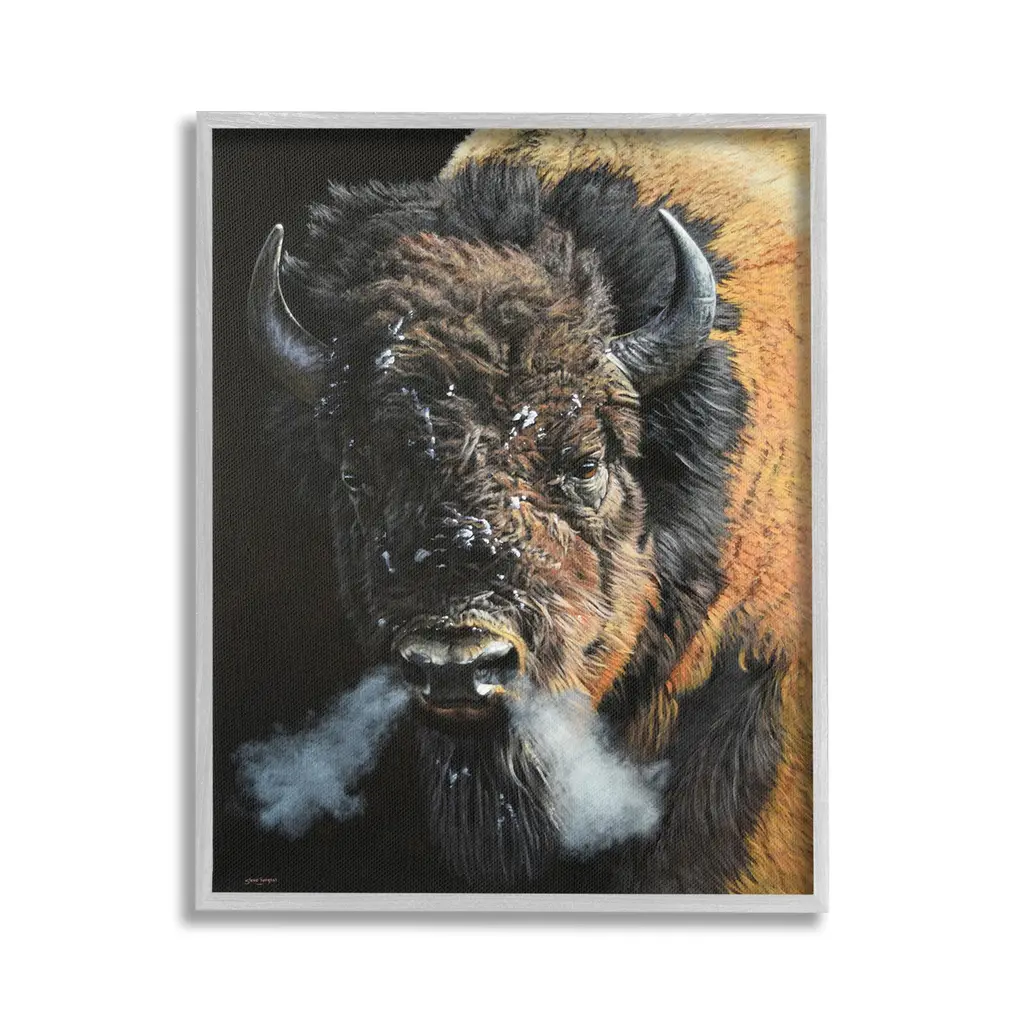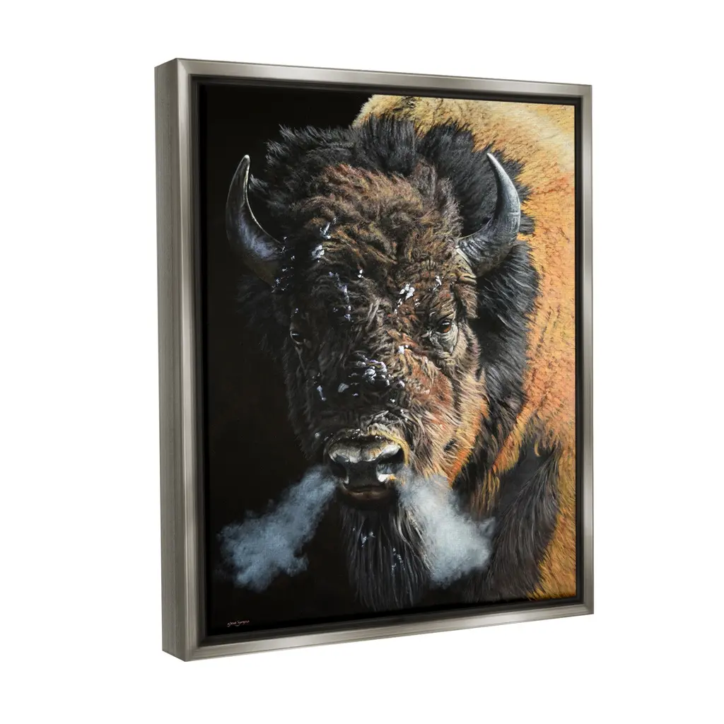 Stupell Bison Breathing Steam Framed Floater Canvas Wall Art Design By Steve Burgess - 17 X 21 - Grey