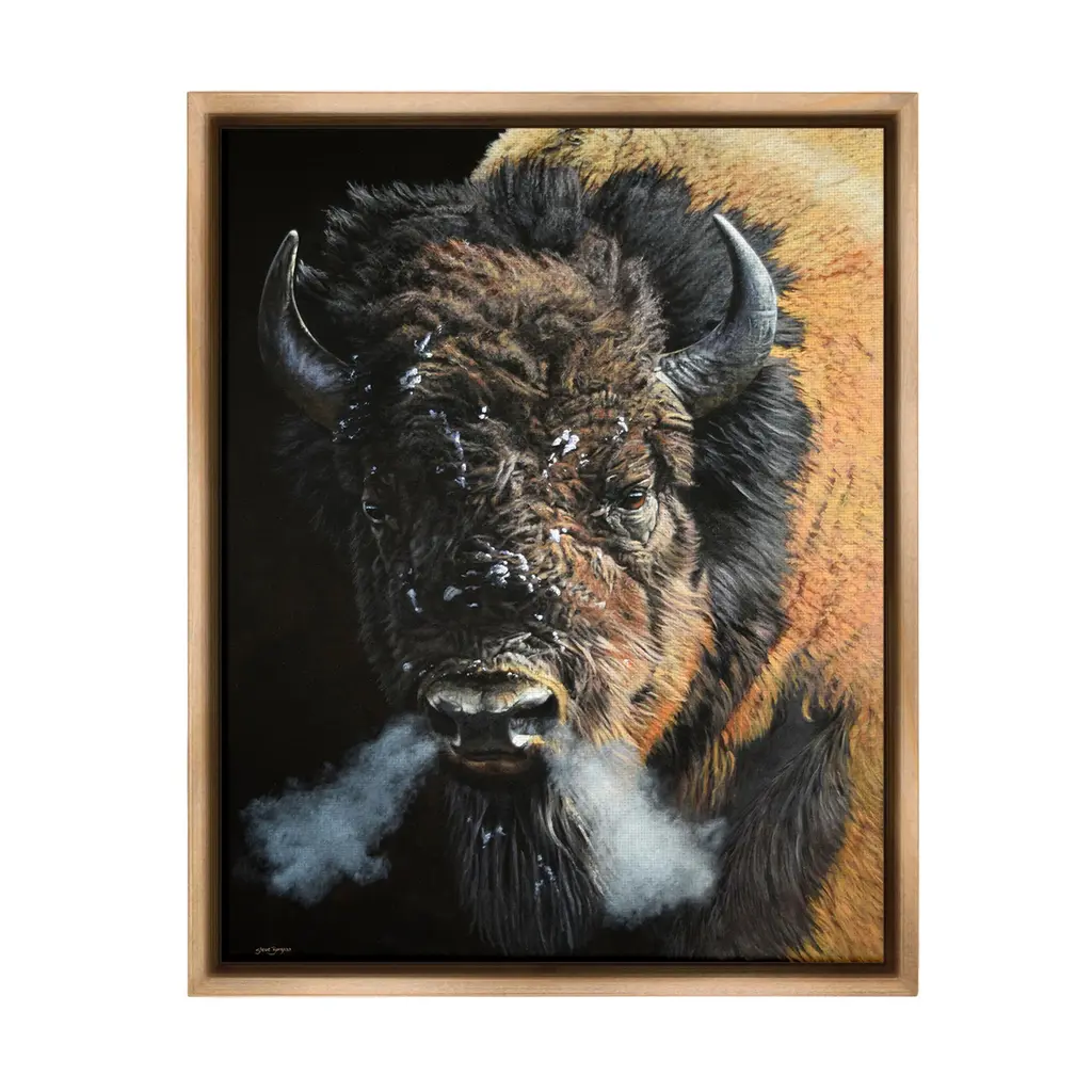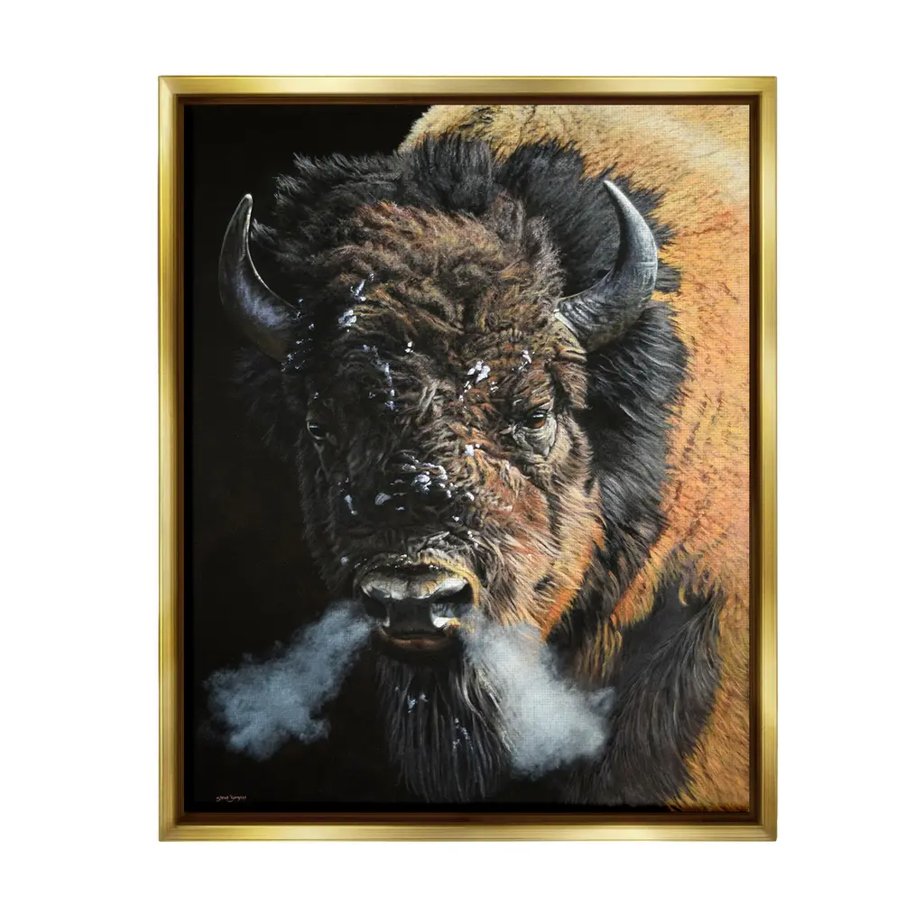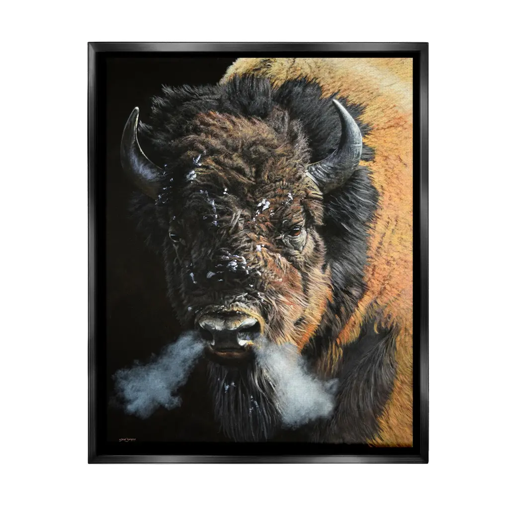 Elevate your home or office to the next level with Stupell Framed Floating Canvas Wall Art. Our premium hand-stretched canvas is mounted securely into a sturdy lightweight frame. The museum-style gap between the wrapped canvas and the box frame gives the illusion of floating artwork. Stupell Wall Art is made in the USA.Features: Dimensions: 17 x 1.7 x 21 Frame, 16 x 1.5 x 20 Canvas ArtFloating Frame Canvas Products are available in sizes 17"x21" and 25"x31". All Floating Frame Canvas Products have a 1.7" Depth.Wall Art is Ready to Hang with Hardware Free Hanging. No Installation required. For Easy Set Up Lean or Layer Artwork on Shelf or Against Wall. Artwork is Permently Fixed into the Frame.Our elevated 1.7" Thick Floating Frame is the perfect complement to our canvas style Wall Art. We use only the highest quality inks in house with industry leading printing solutions. Canvas is hand stretched over a durable wood foundation and then mounted securly into a Modern Box Frame. Made in the USA.Artwork Relates To: Animal, Buffalo, Mammal, Wildlife, Bison, Bull, Photography, SnowDesign by Steve Burgess