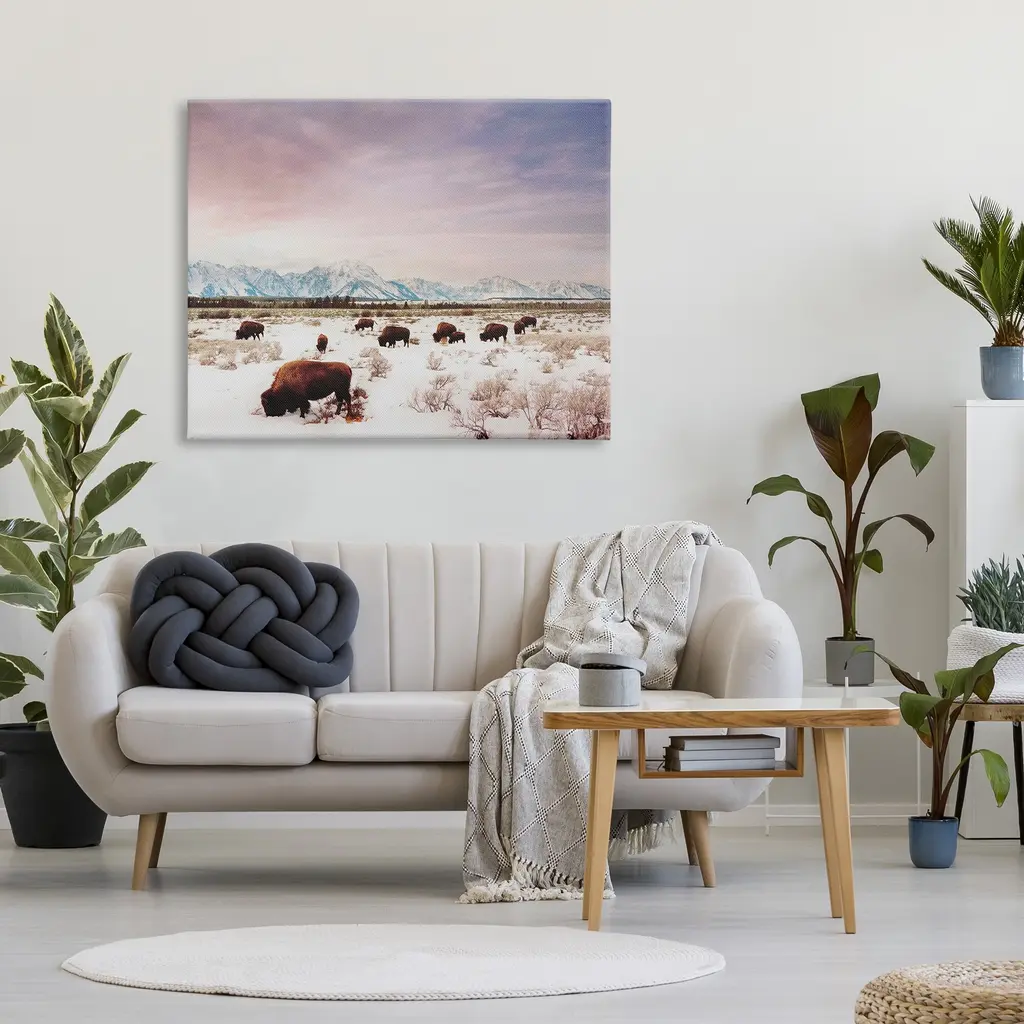 We create our stretched canvas to the highest standards. Using only the highest quality inks and canvas on Mimaki printers, we hand-cut and stretch each piece over a 1.5-inch thick wooden frame for hanging. As a result, the art comes ready to hang on the sturdy ledge with no installation required. Stupell Wall Art is made in the USA.Features: Dimensions: 20 x 1.5 x 16 InchesStretched Canvas Sizes Include Standard: 20 x 1.5 x 16 Large: 30 x 1.5 x 20 X-Large: 40 x 1.5 x 30 Oversized: 48 x 1.5 x 36Wall Art is Ready to Hang with Hardware Free Hanging. No installation required. For Easy Set Up Lean or Layer Artwork on Shelf or Against Wall.Our stretched canvas is created with the highest standards. We use only the highest quality inks and canvas on our in house Mimaki printers, and then hand cut and stretch each piece over a 1.5 inch thick wooden frame for hanging. Made In USA.Artwork Relates To: Animal, Buffalo, Mammal, Wildlife, Bison, Nature, MountainDesign by Annie Bailey Art