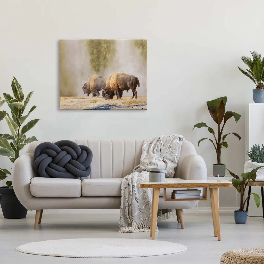 We create our stretched canvas to the highest standards. Using only the highest quality inks and canvas on Mimaki printers, we hand-cut and stretch each piece over a 1.5-inch thick wooden frame for hanging. As a result, the art comes ready to hang on the sturdy ledge with no installation required. Stupell Wall Art is made in the USA.Features: Dimensions: 20 x 1.5 x 16 InchesStretched Canvas Sizes Include Standard: 20 x 1.5 x 16 Large: 30 x 1.5 x 20 X-Large: 40 x 1.5 x 30 Oversized: 48 x 1.5 x 36Wall Art is Ready to Hang - No Installation or Hardware Needed. For Easy Set Up Lean or Layer Artwork on Shelf or Against Wall.Our stretched canvas is created with the highest standards. We use only the highest quality inks and canvas on our in house Mimaki printers, and then hand cut and stretch each piece over a 1.5 inch thick wooden frame for hanging. Made In USA.Artwork Relates To: Animal, Buffalo, Mammal, Wildlife, Bison, PhotographyDesign by Mark Kelso