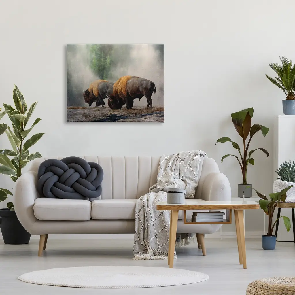 We create our stretched canvas to the highest standards. Using only the highest quality inks and canvas on Mimaki printers, we hand-cut and stretch each piece over a 1.5-inch thick wooden frame for hanging. As a result, the art comes ready to hang on the sturdy ledge with no installation required. Stupell Wall Art is made in the USA.Features: Dimensions: 20 x 1.5 x 16 InchesStretched Canvas Sizes Include Standard: 20 x 1.5 x 16 Large: 30 x 1.5 x 20 X-Large: 40 x 1.5 x 30 Oversized: 48 x 1.5 x 36Wall Art is Ready to Hang - No Installation or Hardware Needed. For Easy Set Up Lean or Layer Artwork on Shelf or Against Wall.Our stretched canvas is created with the highest standards. We use only the highest quality inks and canvas on our in house Mimaki printers, and then hand cut and stretch each piece over a 1.5 inch thick wooden frame for hanging. Made In USA.Artwork Relates To: Animal, Buffalo, Mammal, Wildlife, Bison, PhotographyDesign by Mark Kelso