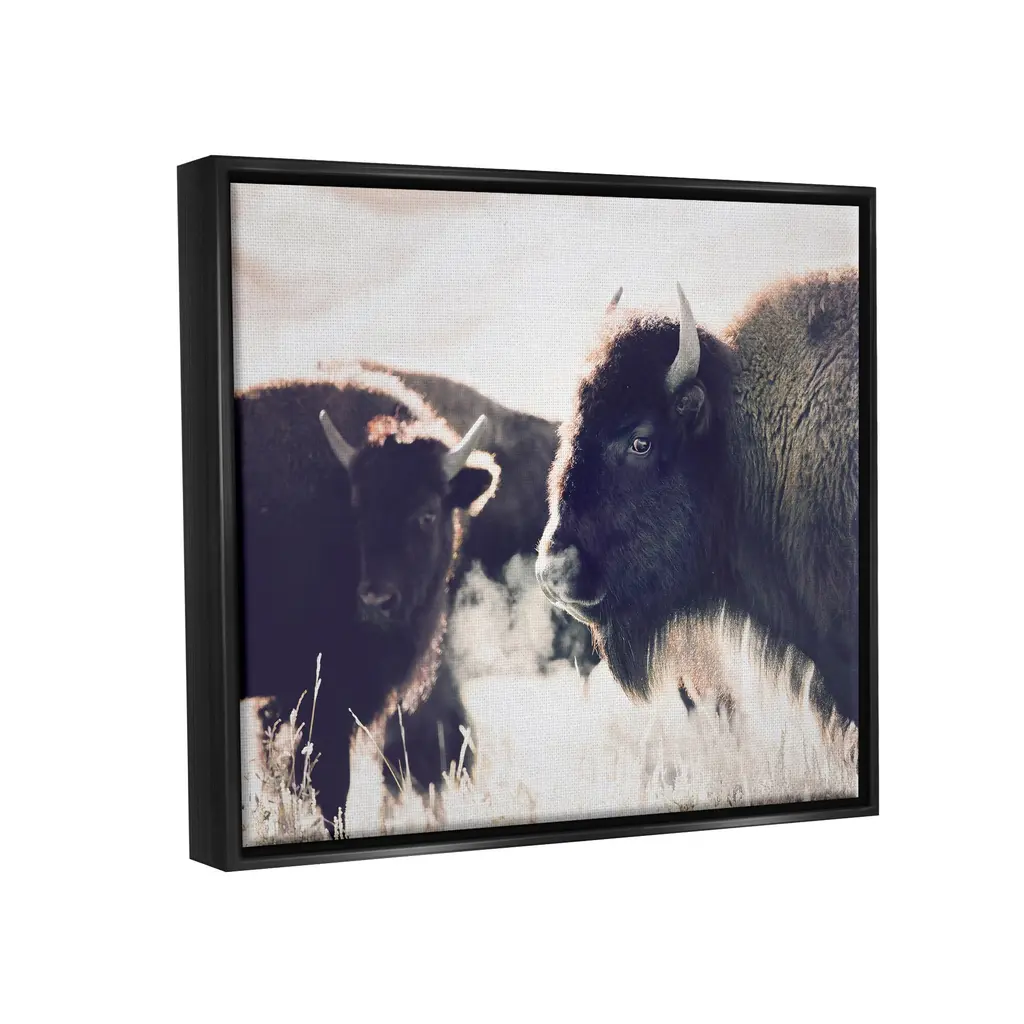 Elevate your home or office to the next level with Stupell Framed Floating Canvas Wall Art. Our premium hand-stretched canvas is mounted securely into a sturdy lightweight frame. The museum-style gap between the wrapped canvas and the box frame gives the illusion of floating artwork. Stupell Wall Art is made in the USA.Features: Dimensions: 21 x 1.7 x 17 Frame, 20 x 1.5 x 16 Canvas ArtFloating Frame Sizes Include Standard: 21 x 1.7 x 17 Oversized: 31 x 1.7 x 25Wall Art is Ready to Hang with Hardware Free Hanging. No installation required. For Easy Set Up Lean or Layer Artwork on Shelf or Against Wall.Our elevated 1.7" Thick Floating Frame is the perfect complement to our canvas style Wall Art. We use only the highest quality inks in house with industry leading printing solutions. Canvas is hand stretched over a durable wood foundation and then mounted securly into a Modern Box Frame. Made in the USA.Artwork Relates To: Animal, Mammal, Wildlife, Bison, Nature, LandscapeDesign by Sisi and Seb