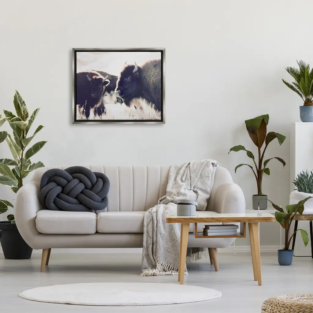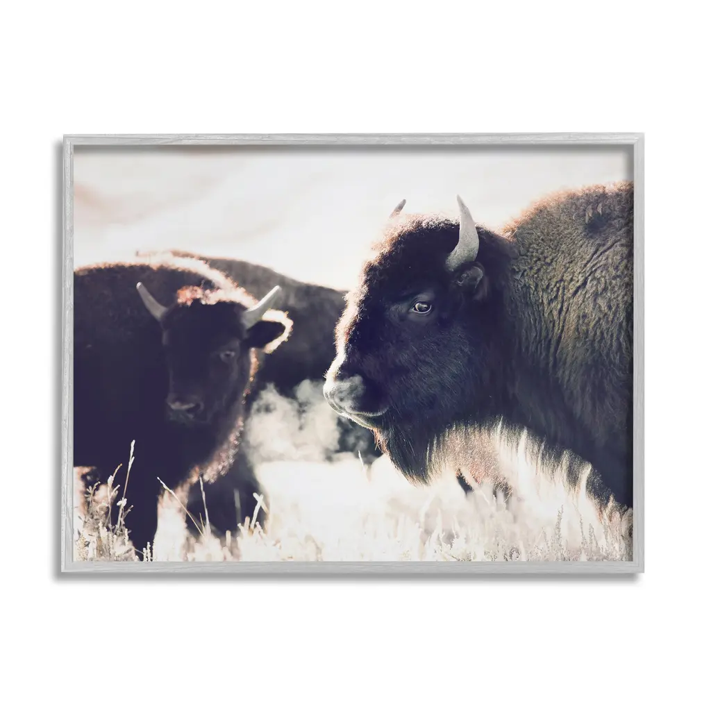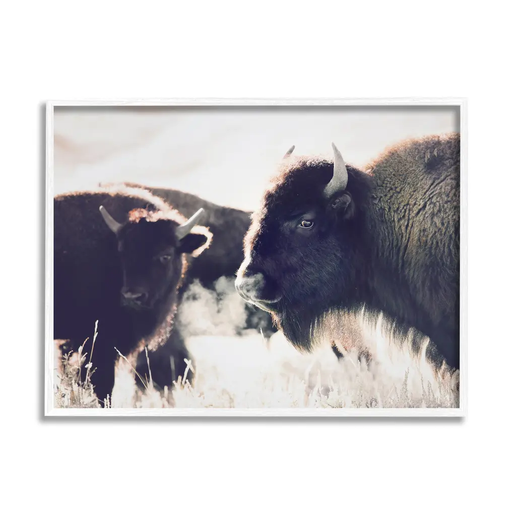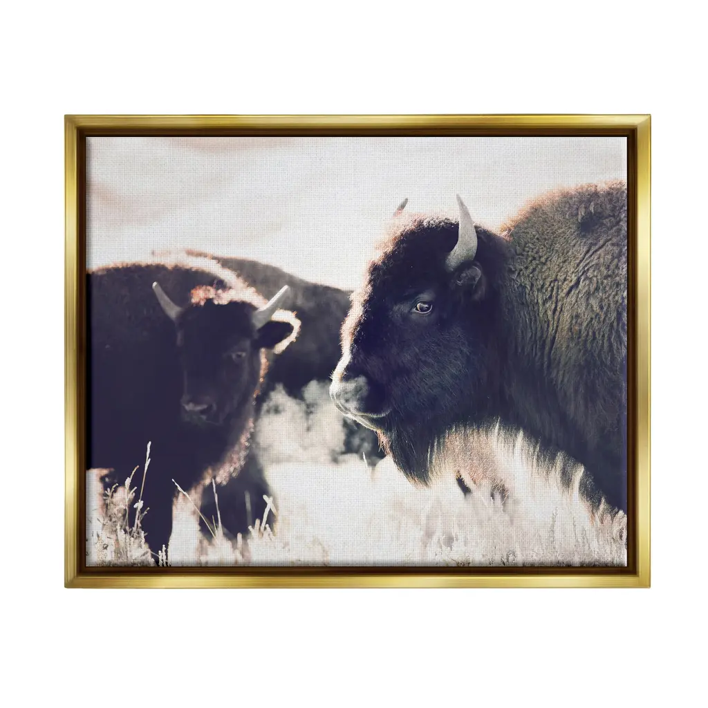 Elevate your home or office to the next level with Stupell Framed Floating Canvas Wall Art. Our premium hand-stretched canvas is mounted securely into a sturdy lightweight frame. The museum-style gap between the wrapped canvas and the box frame gives the illusion of floating artwork. Stupell Wall Art is made in the USA.Features: Dimensions: 21 x 1.7 x 17 Frame, 20 x 1.5 x 16 Canvas ArtFloating Frame Sizes Include Standard: 21 x 1.7 x 17 Oversized: 31 x 1.7 x 25Wall Art is Ready to Hang with Hardware Free Hanging. No installation required. For Easy Set Up Lean or Layer Artwork on Shelf or Against Wall.Our elevated 1.7" Thick Floating Frame is the perfect complement to our canvas style Wall Art. We use only the highest quality inks in house with industry leading printing solutions. Canvas is hand stretched over a durable wood foundation and then mounted securly into a Modern Box Frame. Made in the USA.Artwork Relates To: Animal, Mammal, Wildlife, Bison, Nature, LandscapeDesign by Sisi and Seb