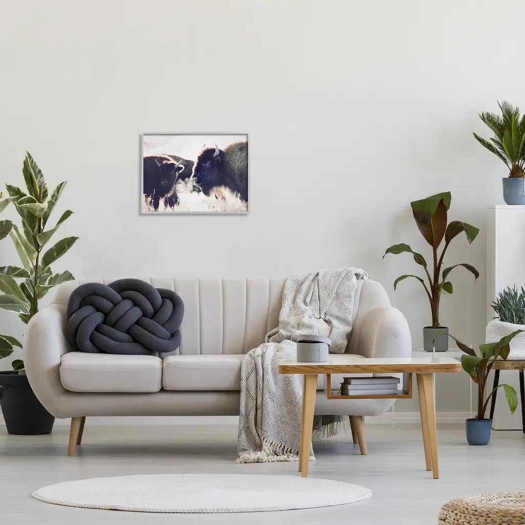 Add dimension to any room with our textured Framed Giclee Artwork. Our framed artwork is securely mounted into a 1.5-inch thick wood grain frame and ready to hang. Frames are available in three alluring styles: black, gray farmhouse and white. In addition, you should check out our oversized options if you want a statement piece. Stupell Wall Art is made in the USA.Features: Dimensions: 14 x 1.5 x 11 FramedFramed Giclee Sizes Include Standard: 14 x 1.5 x 11 Large: 20 x 1.5 x 16 Oversized: 30 x 1.5 x 24Wall Art is Ready to Hang with Hardware Free Hanging. No installation required. For Easy Set Up Lean or Layer Artwork on Shelf or Against Wall.Our giclée prints are carefully mounted on a durable MDF backing, and then perfectly finished in a 1.5 inch thick woodgrain frame. Mounted frame colors include black, gray farmhouse and white. Made In USA.Artwork Relates To: Animal, Mammal, Wildlife, Bison, Nature, LandscapeDesign by Sisi and Seb