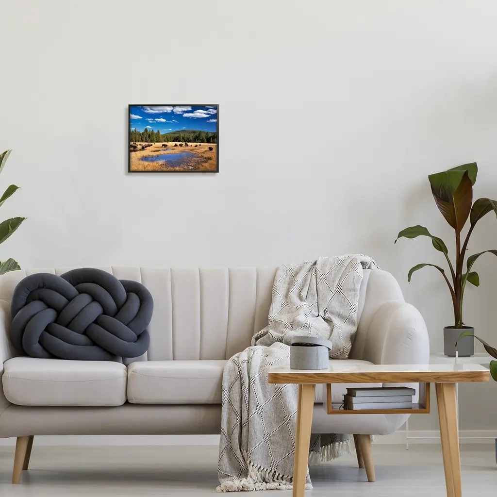 Add dimension to any room with our textured Framed Giclee Artwork. Our framed artwork is securely mounted into a 1.5-inch thick wood grain frame and ready to hang. Frames are available in three alluring styles: black, gray farmhouse and white. In addition, you should check out our oversized options if you want a statement piece. Stupell Wall Art is made in the USA.Features: Dimensions: 14 x 1.5 x 11 FramedFramed Giclee Sizes Include Standard: 14 x 1.5 x 11 Large: 20 x 1.5 x 16 Oversized: 30 x 1.5 x 24Wall Art is Ready to Hang - No Installation or Hardware Needed. For Easy Set Up Lean or Layer Artwork on Shelf or Against Wall.Our giclée prints are carefully mounted on a durable MDF backing, and then perfectly finished in a 1.5 inch thick woodgrain frame. Mounted frame colors include black, gray farmhouse and white. Made In USA.Artwork Relates To: Nature, Scenery, Animal, Buffalo, Wildlife, Field, Grassland, Bison, Landscape, SkyDesign by Dennis Frates