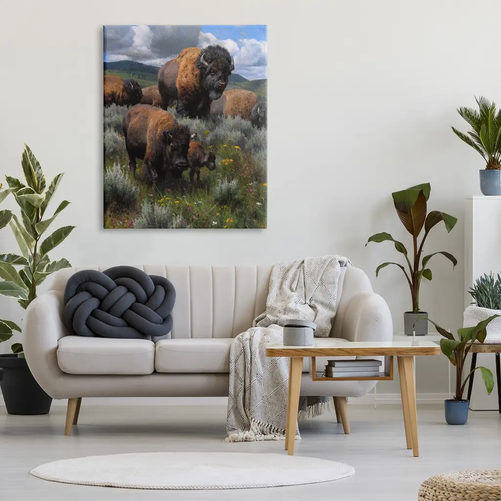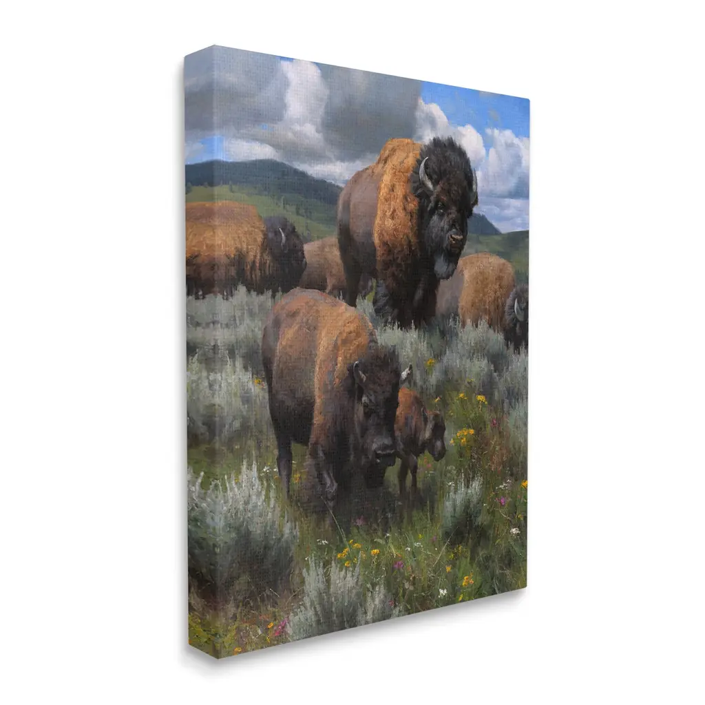 We create our stretched canvas to the highest standards. Using only the highest quality inks and canvas on Mimaki printers, we hand-cut and stretch each piece over a 1.5-inch thick wooden frame for hanging. As a result, the art comes ready to hang on the sturdy ledge with no installation required. Stupell Wall Art is made in the USA.Features: Dimensions: 16 x 1.5 x 20 InchesStretched Canvas Sizes Include Standard: 16 x 1.5 x 20 Large: 20 x 1.5 x 30 X-Large: 30 x 1.5 x 40 Oversized: 36 x 1.5 x 48Wall Art is Ready to Hang with Hardware Free Hanging. No installation required. For Easy Set Up Lean or Layer Artwork on Shelf or Against Wall.Our stretched canvas is created with the highest standards. We use only the highest quality inks and canvas on our in house Mimaki printers, and then hand cut and stretch each piece over a 1.5 inch thick wooden frame for hanging. Made In USA.Artwork Relates To: Animal, Buffalo, Mammal, Wildlife, Bison, Grassland, NatureDesign by Kyle Sims