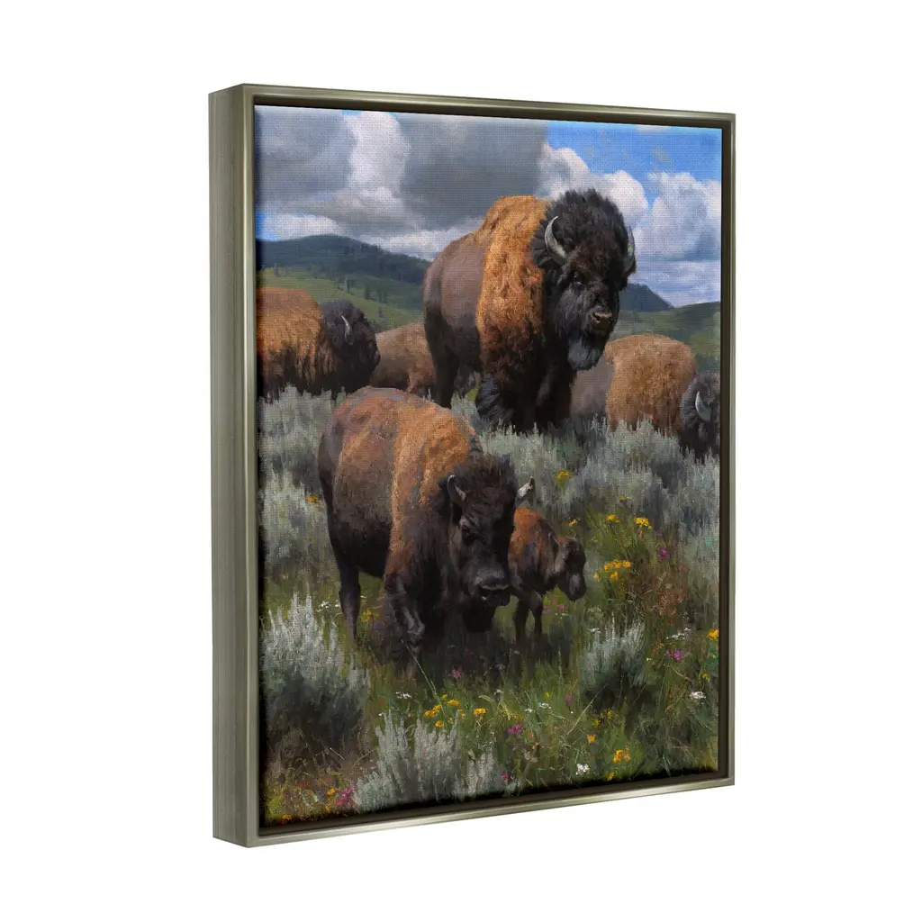 Stupell Bison Herd Rural Landscape Framed Floater Canvas Wall Art Design By Kyle Sims - 17 X 21 - Grey
