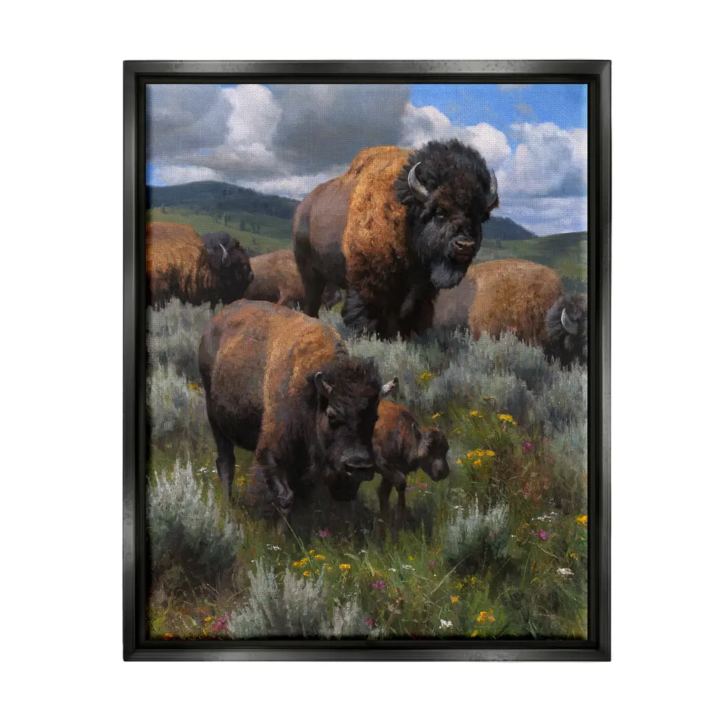 Elevate your home or office to the next level with Stupell Framed Floating Canvas Wall Art. Our premium hand-stretched canvas is mounted securely into a sturdy lightweight frame. The museum-style gap between the wrapped canvas and the box frame gives the illusion of floating artwork. Stupell Wall Art is made in the USA.Features: Dimensions: 17 x 1.7 x 21 Frame, 16 x 1.5 x 20 Canvas ArtFloating Frame Sizes Include Standard: 17 x 1.7 x 21 Oversized: 25 x 1.7 x 31Wall Art is Ready to Hang with Hardware Free Hanging. No installation required. For Easy Set Up Lean or Layer Artwork on Shelf or Against Wall.Our elevated 1.7" Thick Floating Frame is the perfect complement to our canvas style Wall Art. We use only the highest quality inks in house with industry leading printing solutions. Canvas is hand stretched over a durable wood foundation and then mounted securly into a Modern Box Frame. Made in the USA.Artwork Relates To: Animal, Buffalo, Mammal, Wildlife, Bison, Grassland, NatureDesign by Kyle Sims