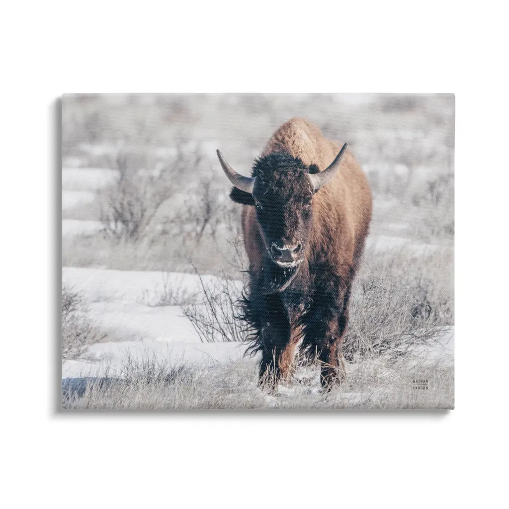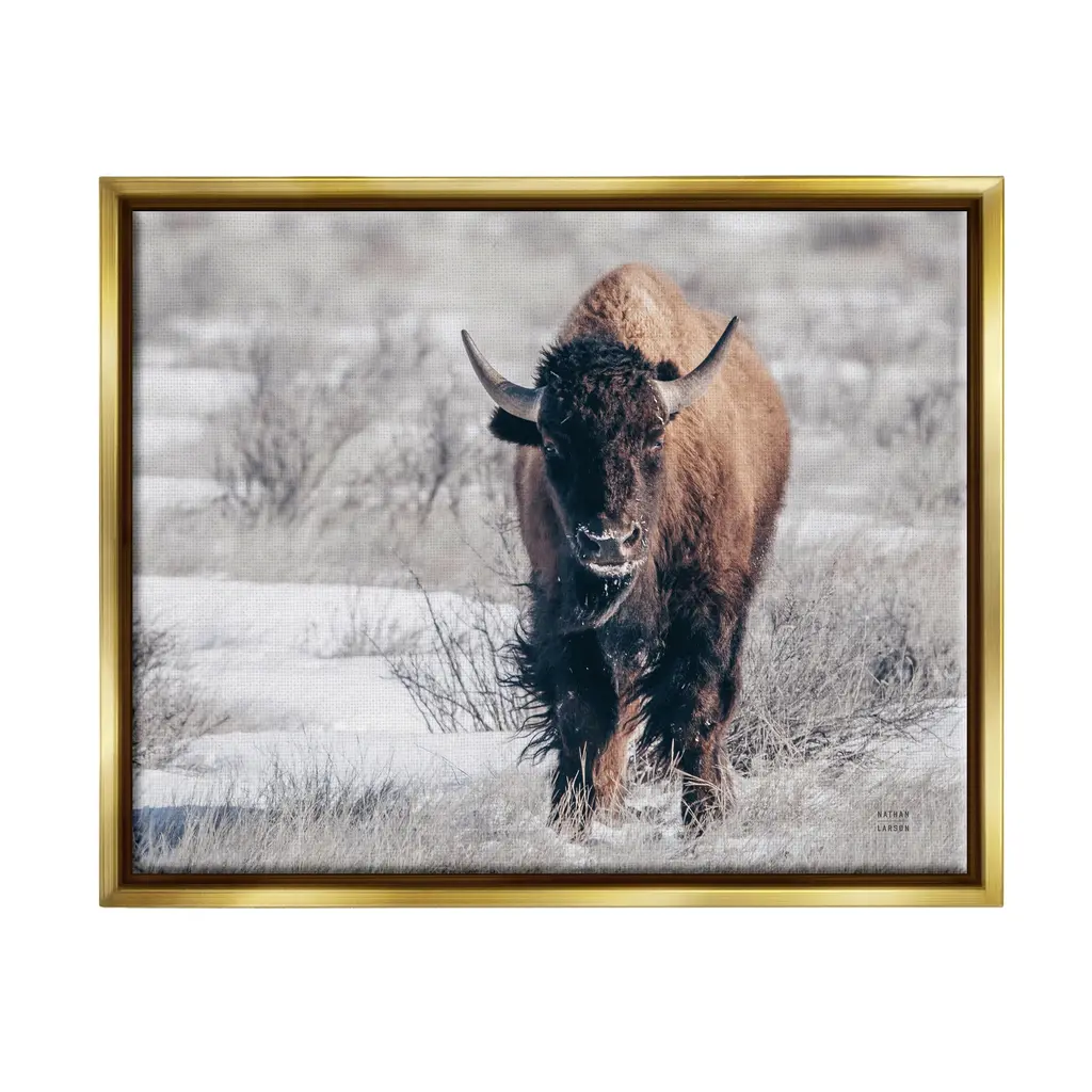 Elevate your home or office to the next level with Stupell Framed Floating Canvas Wall Art. Our premium hand-stretched canvas is mounted securely into a sturdy lightweight frame. The museum-style gap between the wrapped canvas and the box frame gives the illusion of floating artwork. Stupell Wall Art is made in the USA.Features: Dimensions: 21 x 1.7 x 17 Frame, 20 x 1.5 x 16 Canvas ArtFloating Frame Sizes Include Standard: 21 x 1.7 x 17 Oversized: 31 x 1.7 x 25Wall Art is Ready to Hang with Hardware Free Hanging. No installation required. For Easy Set Up Lean or Layer Artwork on Shelf or Against Wall.Our elevated 1.7" Thick Floating Frame is the perfect complement to our canvas style Wall Art. We use only the highest quality inks in house with industry leading printing solutions. Canvas is hand stretched over a durable wood foundation and then mounted securly into a Modern Box Frame. Made in the USA.Artwork Relates To: Animal, Mammal, Buffalo, Wildlife, Bison, Landscape, SnowDesign by Nathan Larson