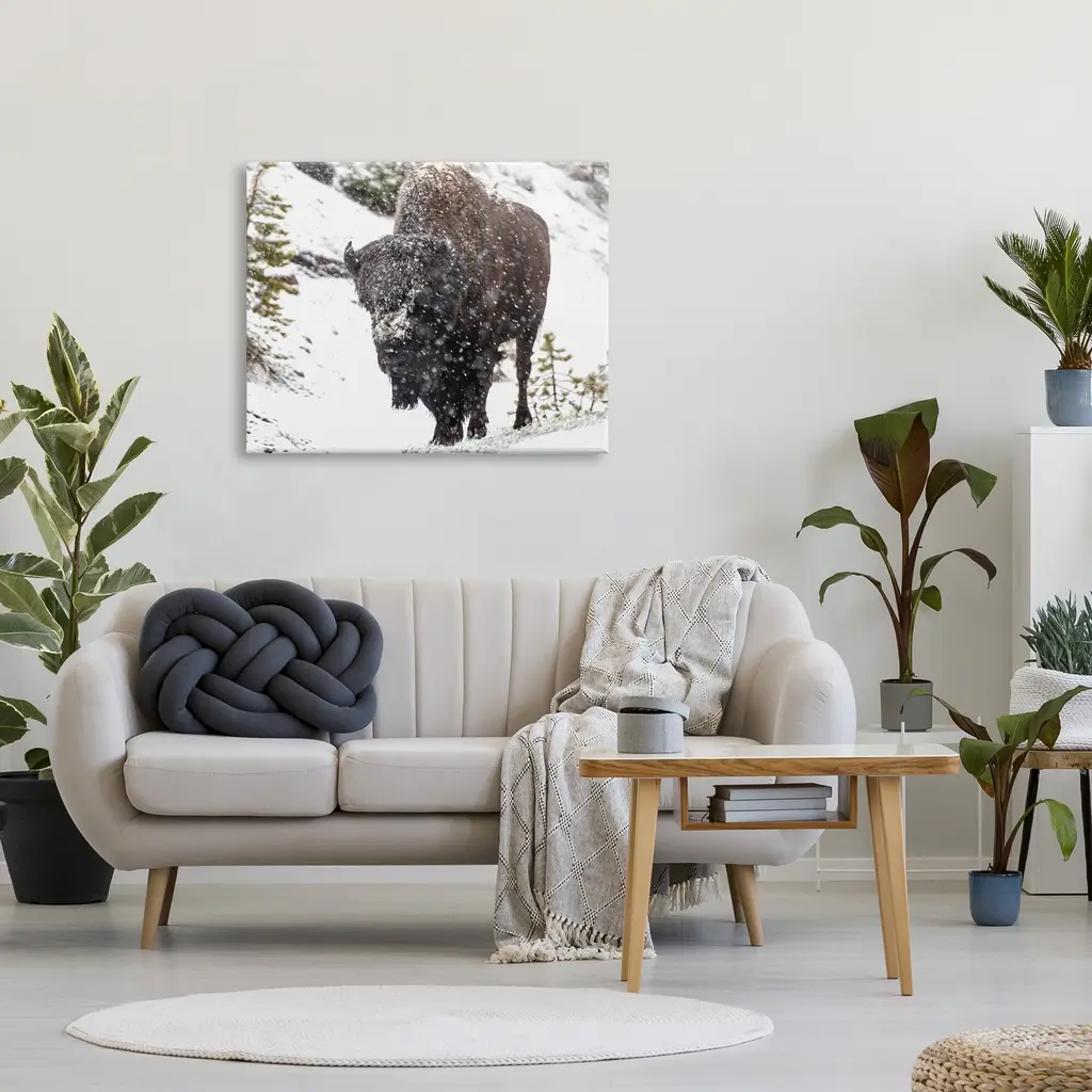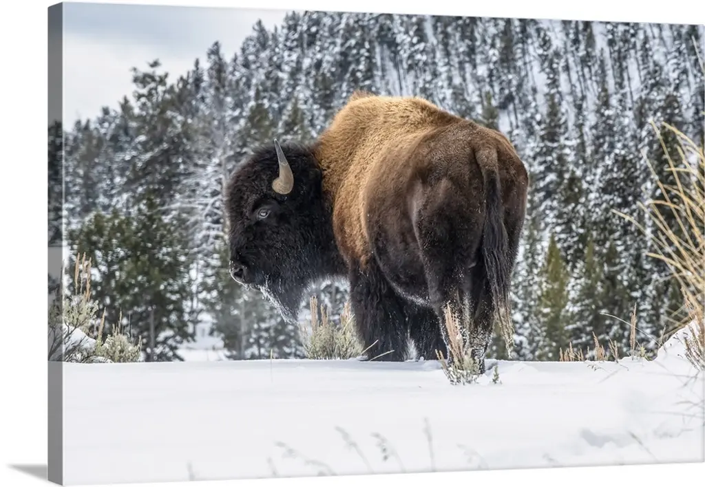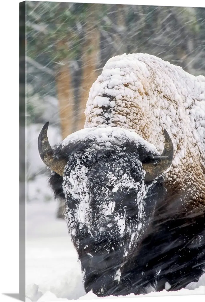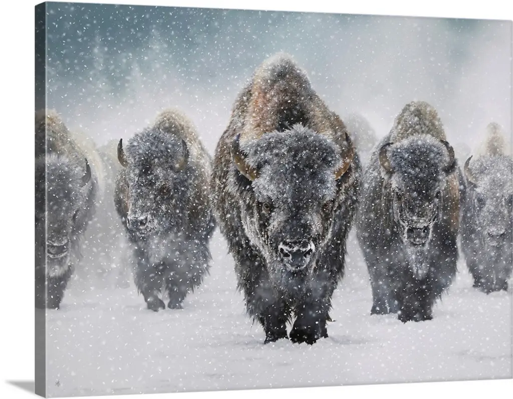 We create our stretched canvas to the highest standards. Using only the highest quality inks and canvas on Mimaki printers, we hand-cut and stretch each piece over a 1.5-inch thick wooden frame for hanging. As a result, the art comes ready to hang on the sturdy ledge with no installation required. Stupell Wall Art is made in the USA.Features: Dimensions: 20 x 1.5 x 16 InchesStretched Canvas Sizes Include Standard: 20 x 1.5 x 16 Large: 30 x 1.5 x 20 X-Large: 40 x 1.5 x 30 Oversized: 48 x 1.5 x 36Wall Art is Ready to Hang with Hardware Free Hanging. No installation required. For Easy Set Up Lean or Layer Artwork on Shelf or Against Wall.Our stretched canvas is created with the highest standards. We use only the highest quality inks and canvas on our in house Mimaki printers, and then hand cut and stretch each piece over a 1.5 inch thick wooden frame for hanging. Made In USA.Artwork Relates To: Animal, Bison, Mammal, Wildlife, Winter, Snow, LandscapeDesign by Kathy Mansfield