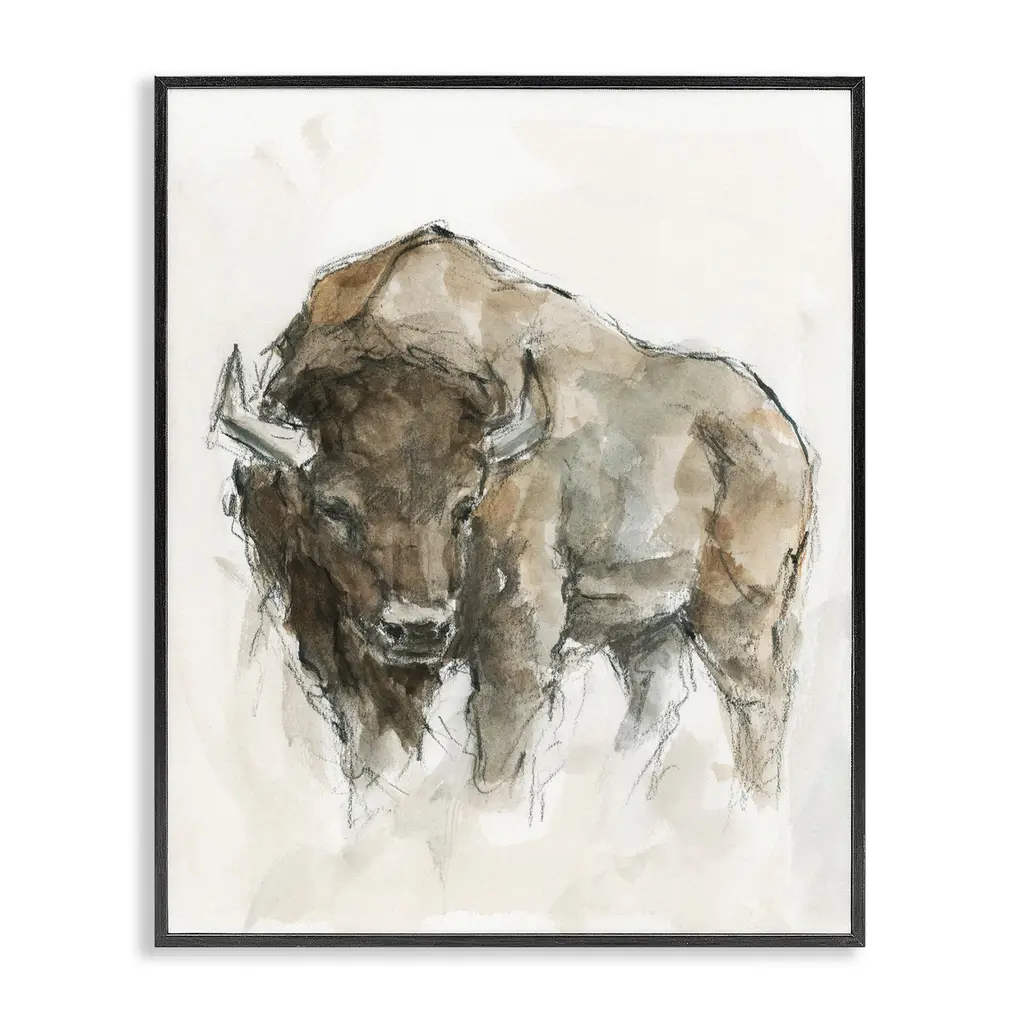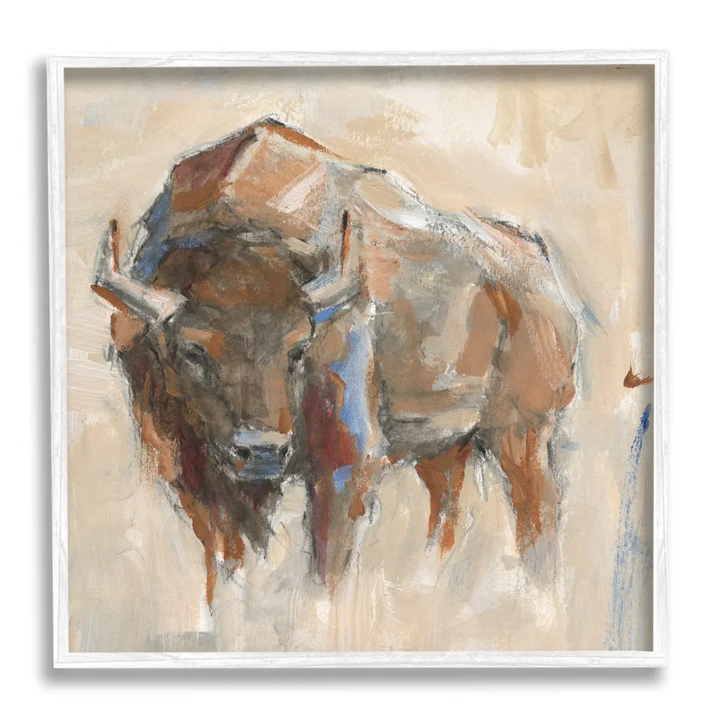Our Framed Giclee Wall Art adds a touch of class to any space in your home or office. Frames are available in three alluring styles: black, gray farmhouse and white. Our textured artwork will add more depth and dimension to any space. Each piece is mounted with a 1.5 inch thick wood grain frame that is ready to hang! Looking for a statement piece? We have oversized artwork available.Features:Framed Giclee Sizes IncludeStandard: 12 x 1.5 x 12Large: 17 x 1.5 x 17Oversized: 24 x 1.5 x 24Wall Art is Ready to Hang - No Installation or Hardware Needed. For Easy Set Up Lean or Layer Artwork on Shelf or Against Wall.Artwork Relates To: Painting, Modern Art, Mammal, Animal, Bison, WildlifeOur giclee prints are carefully mounted on a durable MDF backing, and then perfectly finished in a 1.5 inch thick woodgrain frame. Mounted frame colors include black, gray farmhouse and white. Made In USA.Design by Ethan Harper