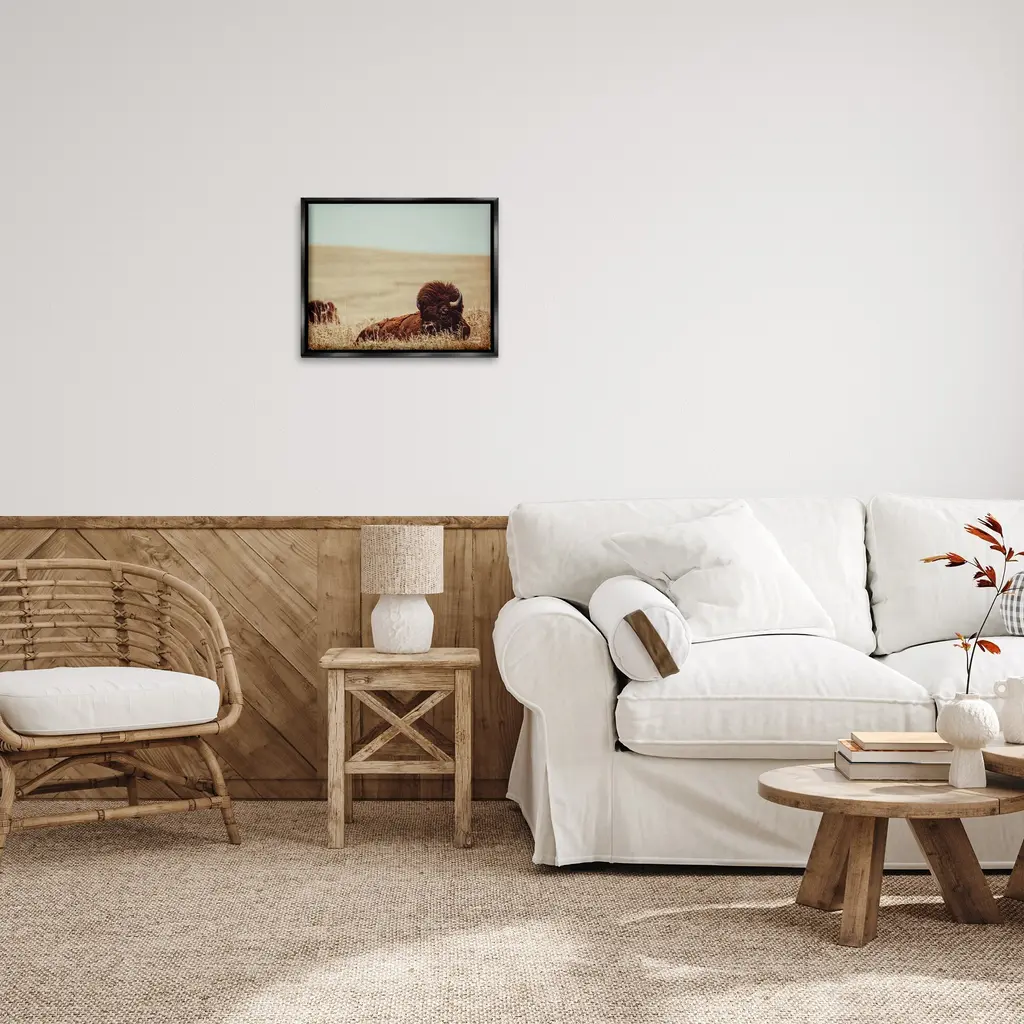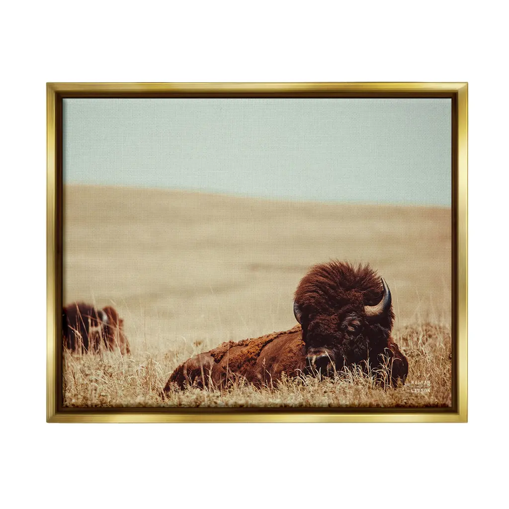 Elevate your home or office to the next level with Stupell Framed Floating Canvas Wall Art. Our premium hand-stretched canvas is mounted securely into a sturdy lightweight frame. The museum-style gap between the wrapped canvas and the box frame gives the illusion of floating artwork. Stupell Wall Art is made in the USA.Features: Dimensions: 21 x 1.7 x 17 Frame, 20 x 1.5 x 16 Canvas ArtFloating Frame Canvas Products are available in sizes 21"x17" and 31"x25". All Floating Frame Canvas Products have a 1.7" Depth.Wall Art is Ready to Hang with Hardware Free Hanging. No Installation required. For Easy Set Up Lean or Layer Artwork on Shelf or Against Wall. Artwork is Permently Fixed into the Frame.Our elevated 1.7" Thick Floating Frame is the perfect complement to our canvas style Wall Art. We use only the highest quality inks in house with industry leading printing solutions. Canvas is hand stretched over a durable wood foundation and then mounted securly into a Modern Box Frame. Made in the USA.Artwork Relates To: Animal, Buffalo, Mammal, Wildlife, Bison, Field, Grassland, Nature, Country, Farm, LandscapeDesign by Nathan Larson