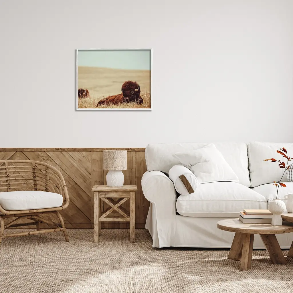 Add dimension to any room with our textured Framed Giclee Artwork. Our framed artwork is securely mounted into a 1.5-inch thick wood grain frame and ready to hang. Frames are available in three alluring styles: black, gray farmhouse and white. In addition, you should check out our oversized options if you want a statement piece. Stupell Wall Art is made in the USA.Features: Dimensions: 14 x 1.5 x 11 FramedFramed Giclee Products are available in the sizes 14"x11", 20"x16" or 30"x24". All Framed Giclee Products have a 1.5" Depth. Wall Art is Ready to Hang with Hardware Free Hanging. No installation required. For Easy Set Up Lean or Layer Artwork on Shelf or Against Wall.Our giclée prints are carefully mounted on a durable MDF backing, and then perfectly finished in a 1.5 inch thick woodgrain frame. Mounted frame colors include black, gray farmhouse and white. Made In USA.Artwork Relates To: Animal, Buffalo, Mammal, Wildlife, Bison, Field, Grassland, Nature, Country, Farm, LandscapeDesign by Nathan Larson