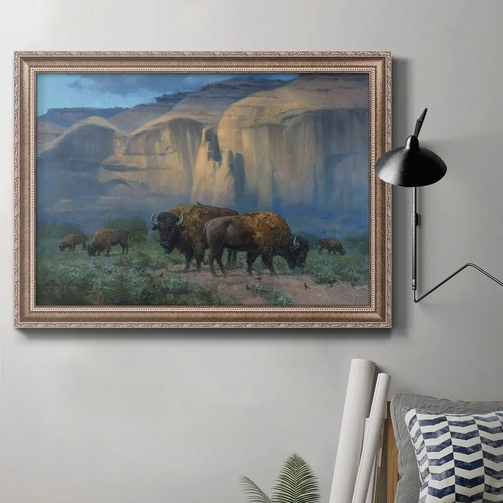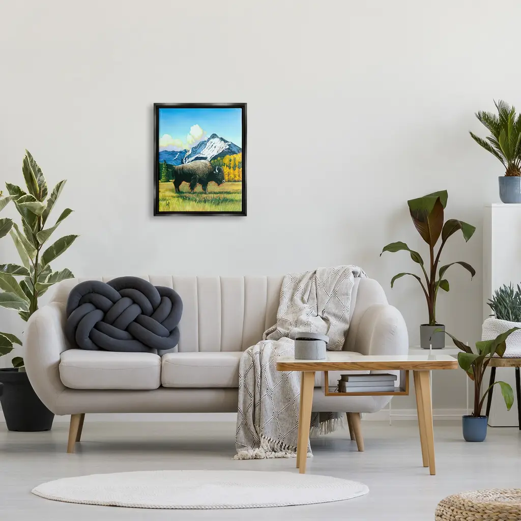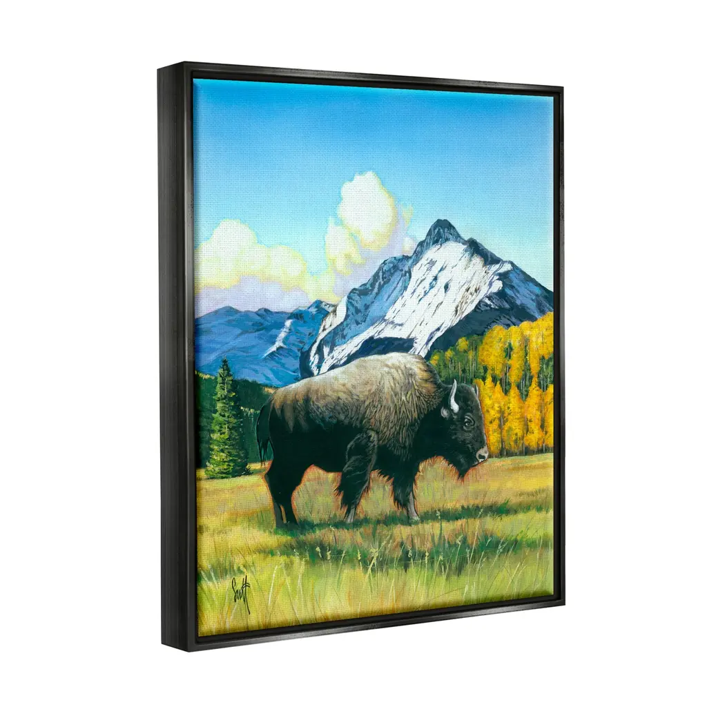 Elevate your home or office to the next level with Stupell Framed Floating Canvas Wall Art. Our premium hand-stretched canvas is mounted securely into a sturdy lightweight frame. The museum-style gap between the wrapped canvas and the box frame gives the illusion of floating artwork. Stupell Wall Art is made in the USA.Features: Dimensions: 17 x 1.7 x 21 Frame, 16 x 1.5 x 20 Canvas ArtFloating Frame Sizes Include Standard: 17 x 1.7 x 21 Oversized: 25 x 1.7 x 31Wall Art is Ready to Hang with Hardware Free Hanging. No installation required. For Easy Set Up Lean or Layer Artwork on Shelf or Against Wall.Our elevated 1.7" Thick Floating Frame is the perfect complement to our canvas style Wall Art. We use only the highest quality inks in house with industry leading printing solutions. Canvas is hand stretched over a durable wood foundation and then mounted securly into a Modern Box Frame. Made in the USA.Artwork Relates To: Animal, Buffalo, Mammal, Wildlife, Bison, Mountain, Landscape, CloudsDesign by Scott Westmoreland