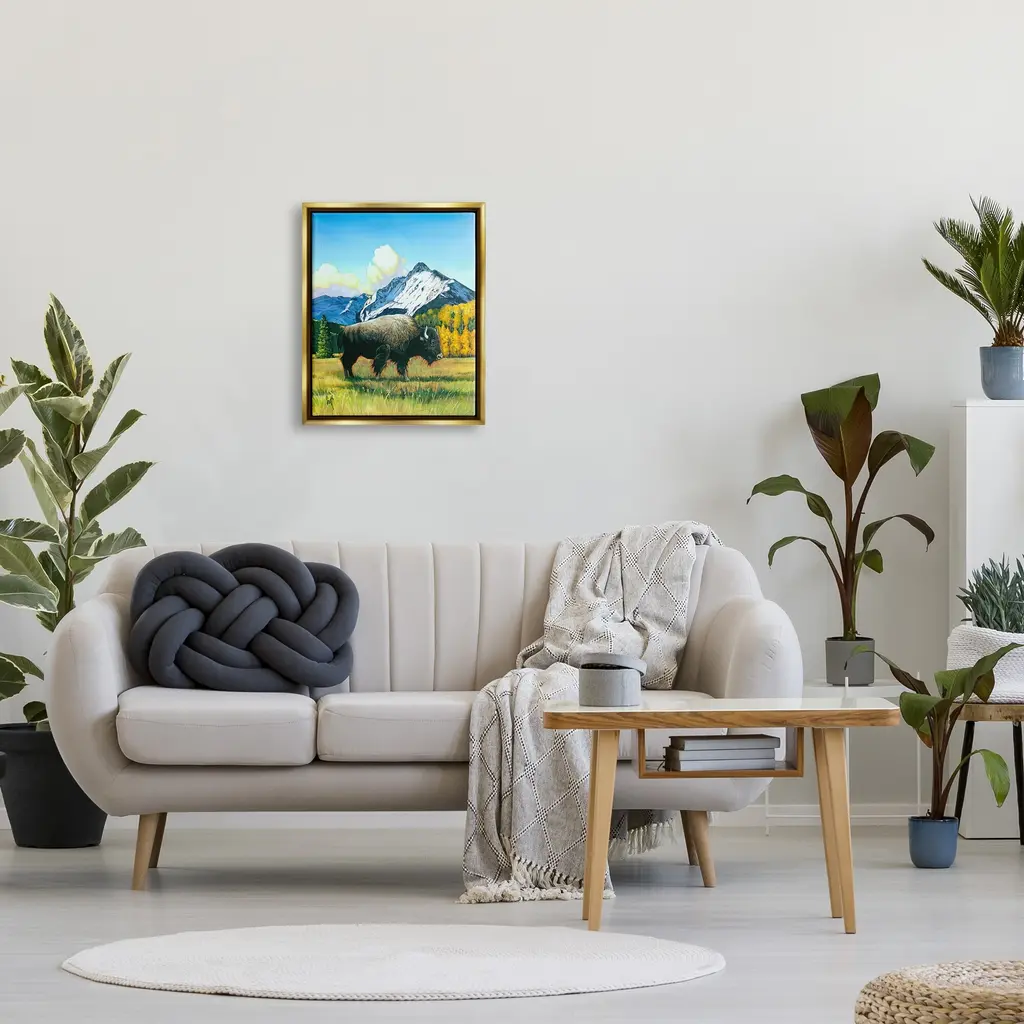 Elevate your home or office to the next level with Stupell Framed Floating Canvas Wall Art. Our premium hand-stretched canvas is mounted securely into a sturdy lightweight frame. The museum-style gap between the wrapped canvas and the box frame gives the illusion of floating artwork. Stupell Wall Art is made in the USA.Features: Dimensions: 17 x 1.7 x 21 Frame, 16 x 1.5 x 20 Canvas ArtFloating Frame Sizes Include Standard: 17 x 1.7 x 21 Oversized: 25 x 1.7 x 31Wall Art is Ready to Hang with Hardware Free Hanging. No installation required. For Easy Set Up Lean or Layer Artwork on Shelf or Against Wall.Our elevated 1.7" Thick Floating Frame is the perfect complement to our canvas style Wall Art. We use only the highest quality inks in house with industry leading printing solutions. Canvas is hand stretched over a durable wood foundation and then mounted securly into a Modern Box Frame. Made in the USA.Artwork Relates To: Animal, Buffalo, Mammal, Wildlife, Bison, Mountain, Landscape, CloudsDesign by Scott Westmoreland