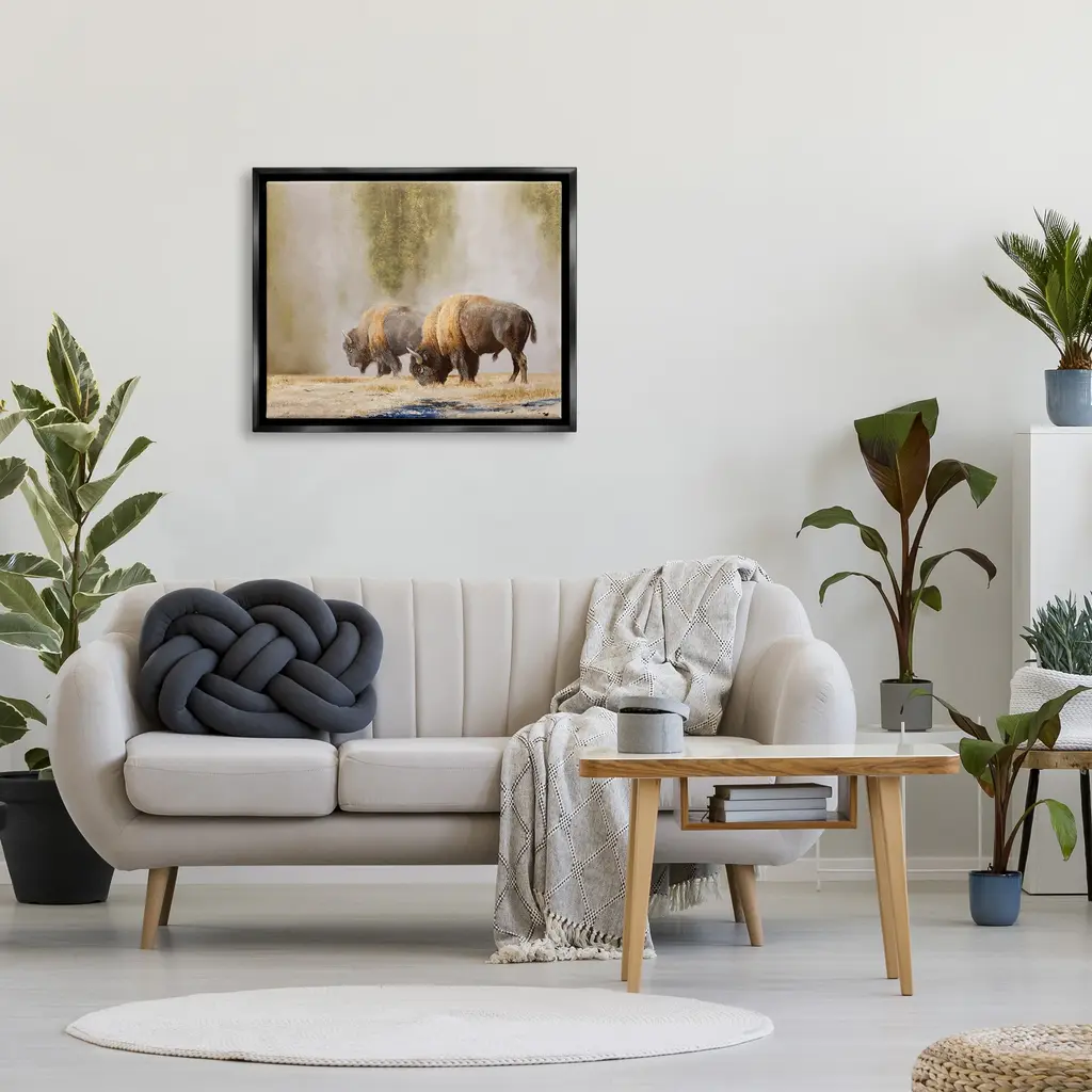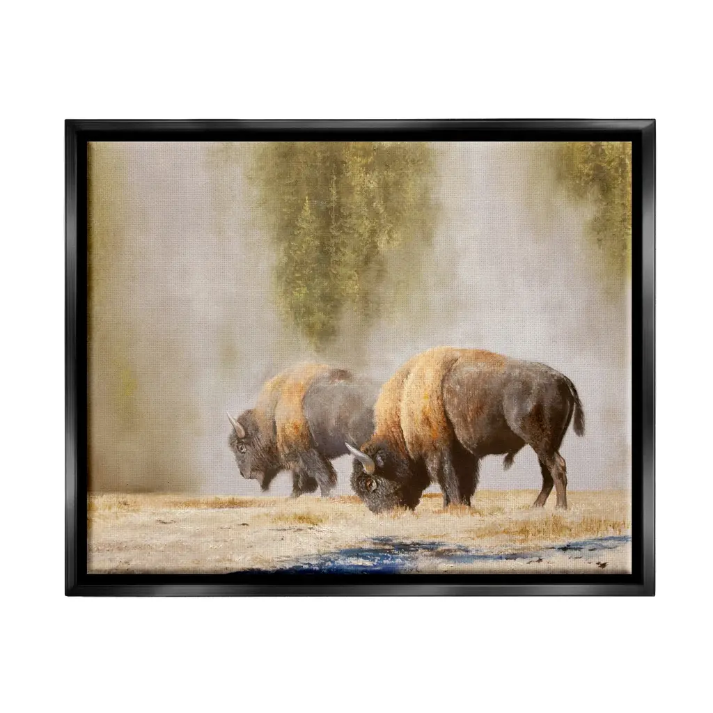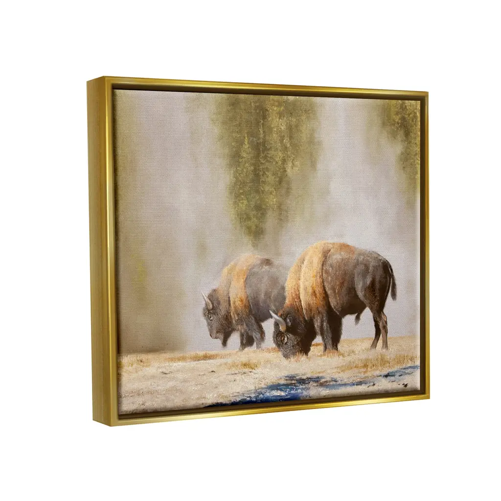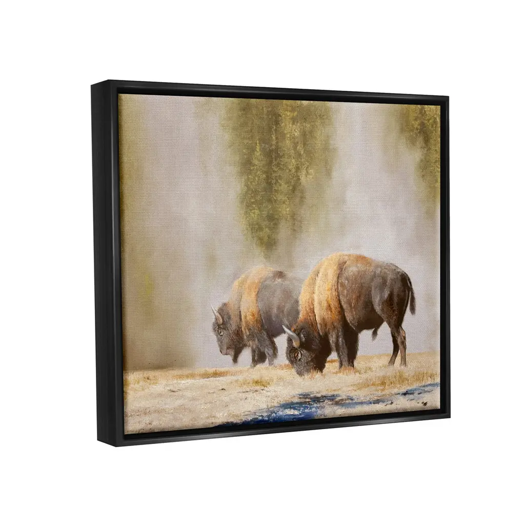 Elevate your home or office to the next level with Stupell Framed Floating Canvas Wall Art. Our premium hand-stretched canvas is mounted securely into a sturdy lightweight frame. The museum-style gap between the wrapped canvas and the box frame gives the illusion of floating artwork. Stupell Wall Art is made in the USA.Features: Dimensions: 21 x 1.7 x 17 Frame, 20 x 1.5 x 16 Canvas ArtFloating Frame Sizes Include Standard: 21 x 1.7 x 17 Oversized: 31 x 1.7 x 25Wall Art is Ready to Hang - No Installation or Hardware Needed. For Easy Set Up Lean or Layer Artwork on Shelf or Against Wall.Our elevated 1.7" Thick Floating Frame is the perfect complement to our canvas style Wall Art. We use only the highest quality inks in house with industry leading printing solutions. Canvas is hand stretched over a durable wood foundation and then mounted securly into a Modern Box Frame. Made in the USA.Artwork Relates To: Animal, Buffalo, Mammal, Wildlife, Bison, PhotographyDesign by Mark Kelso