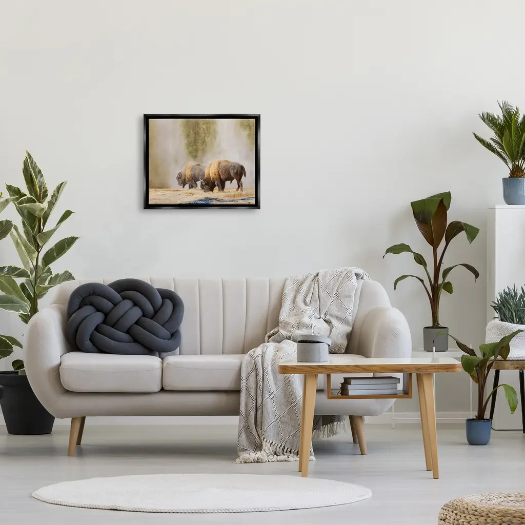 Elevate your home or office to the next level with Stupell Framed Floating Canvas Wall Art. Our premium hand-stretched canvas is mounted securely into a sturdy lightweight frame. The museum-style gap between the wrapped canvas and the box frame gives the illusion of floating artwork. Stupell Wall Art is made in the USA.Features: Dimensions: 21 x 1.7 x 17 Frame, 20 x 1.5 x 16 Canvas ArtFloating Frame Sizes Include Standard: 21 x 1.7 x 17 Oversized: 31 x 1.7 x 25Wall Art is Ready to Hang - No Installation or Hardware Needed. For Easy Set Up Lean or Layer Artwork on Shelf or Against Wall.Our elevated 1.7" Thick Floating Frame is the perfect complement to our canvas style Wall Art. We use only the highest quality inks in house with industry leading printing solutions. Canvas is hand stretched over a durable wood foundation and then mounted securly into a Modern Box Frame. Made in the USA.Artwork Relates To: Animal, Buffalo, Mammal, Wildlife, Bison, PhotographyDesign by Mark Kelso