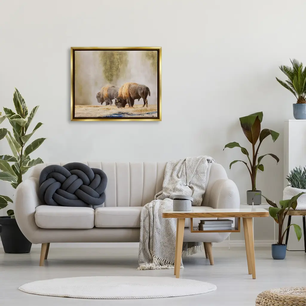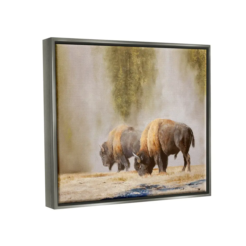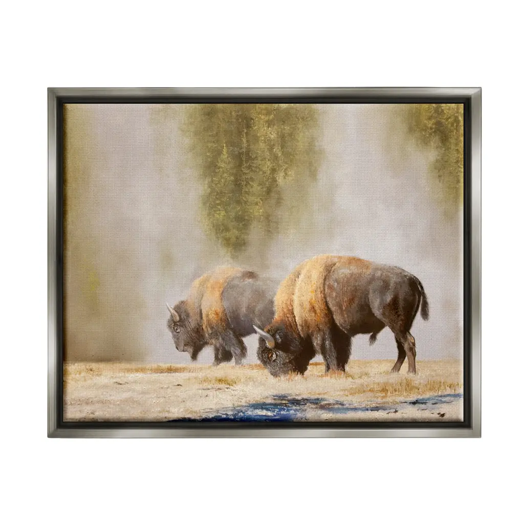 Elevate your home or office to the next level with Stupell Framed Floating Canvas Wall Art. Our premium hand-stretched canvas is mounted securely into a sturdy lightweight frame. The museum-style gap between the wrapped canvas and the box frame gives the illusion of floating artwork. Stupell Wall Art is made in the USA.Features: Dimensions: 21 x 1.7 x 17 Frame, 20 x 1.5 x 16 Canvas ArtFloating Frame Sizes Include Standard: 21 x 1.7 x 17 Oversized: 31 x 1.7 x 25Wall Art is Ready to Hang - No Installation or Hardware Needed. For Easy Set Up Lean or Layer Artwork on Shelf or Against Wall.Our elevated 1.7" Thick Floating Frame is the perfect complement to our canvas style Wall Art. We use only the highest quality inks in house with industry leading printing solutions. Canvas is hand stretched over a durable wood foundation and then mounted securly into a Modern Box Frame. Made in the USA.Artwork Relates To: Animal, Buffalo, Mammal, Wildlife, Bison, PhotographyDesign by Mark Kelso