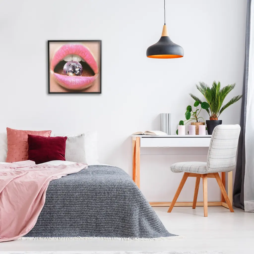 Add dimension to any room with our textured Framed Giclee Artwork. Our framed artwork is securely mounted into a 1.5-inch thick wood grain frame and ready to hang. Frames are available in three alluring styles: black, gray farmhouse and white. In addition, you should check out our oversized options if you want a statement piece. Stupell Wall Art is made in the USA.Features: Dimensions: 12 x 1.5 x 12 FramedFramed Giclee Product Sizes Include 12"x12", 17"x17", and 24"x24". Framed Giclee Products have a 1.5" Depth. Wall Art is Ready to Hang with Hardware Free Hanging. No installation required. For Easy Set Up Lean or Layer Artwork on Shelf or Against Wall.Our giclée prints are carefully mounted on a durable MDF backing, and then perfectly finished in a 1.5 inch thick woodgrain frame. Mounted frame colors include black, gray farmhouse and white. Made In USA.Artwork Relates To: Dance, Music, Disco, Pattern, Abstract, Shape, Modern, Glam, Lips, MouthDesign by Ziwei Li
