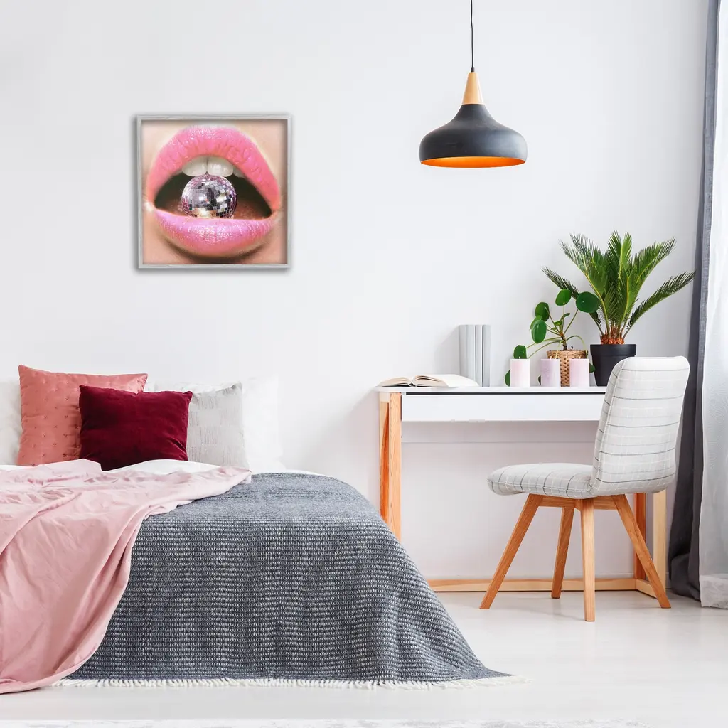 Add dimension to any room with our textured Framed Giclee Artwork. Our framed artwork is securely mounted into a 1.5-inch thick wood grain frame and ready to hang. Frames are available in three alluring styles: black, gray farmhouse and white. In addition, you should check out our oversized options if you want a statement piece. Stupell Wall Art is made in the USA.Features: Dimensions: 12 x 1.5 x 12 FramedFramed Giclee Product Sizes Include 12"x12", 17"x17", and 24"x24". Framed Giclee Products have a 1.5" Depth. Wall Art is Ready to Hang with Hardware Free Hanging. No installation required. For Easy Set Up Lean or Layer Artwork on Shelf or Against Wall.Our giclée prints are carefully mounted on a durable MDF backing, and then perfectly finished in a 1.5 inch thick woodgrain frame. Mounted frame colors include black, gray farmhouse and white. Made In USA.Artwork Relates To: Dance, Music, Disco, Pattern, Abstract, Shape, Modern, Glam, Lips, MouthDesign by Ziwei Li