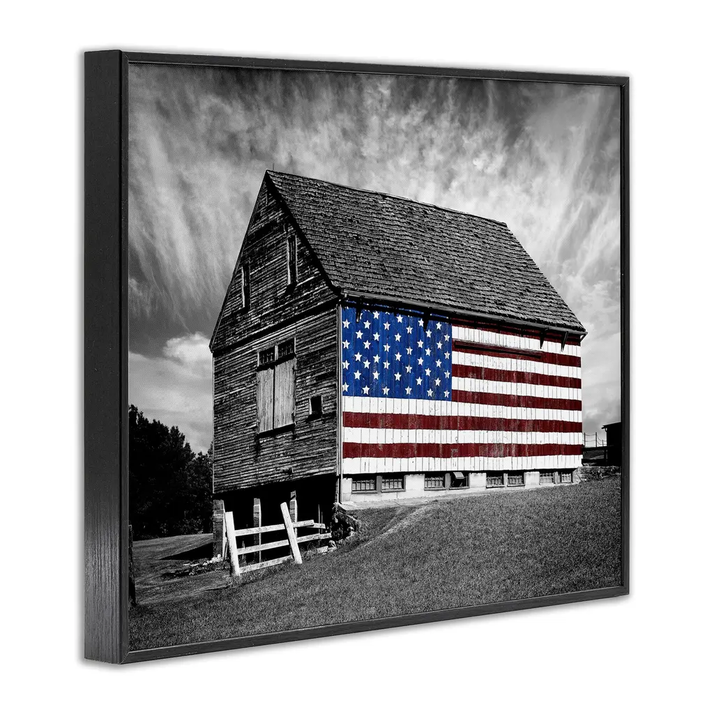 Stupell Black And White Farmhouse Barn American Flag, Framed Giclee, 16 X 1.5 X 20, Made In Usa - Multi-Color - 11 X 14 - Black
