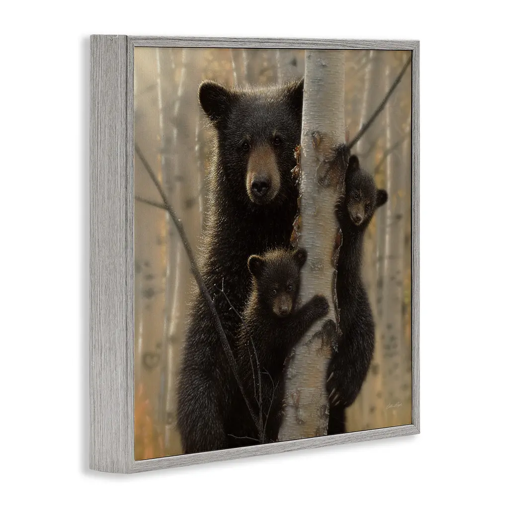 Stupell Black Bear And Cubs Soft Birch Tree Forest Framed Wall Art - 12 X 12 - Grey