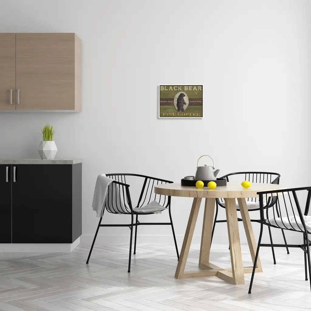 Stupell Black Bear Fine Coffee Rustic Kitchen Mountain Animal Framed Wall Art - Green - 11 X 14 - White