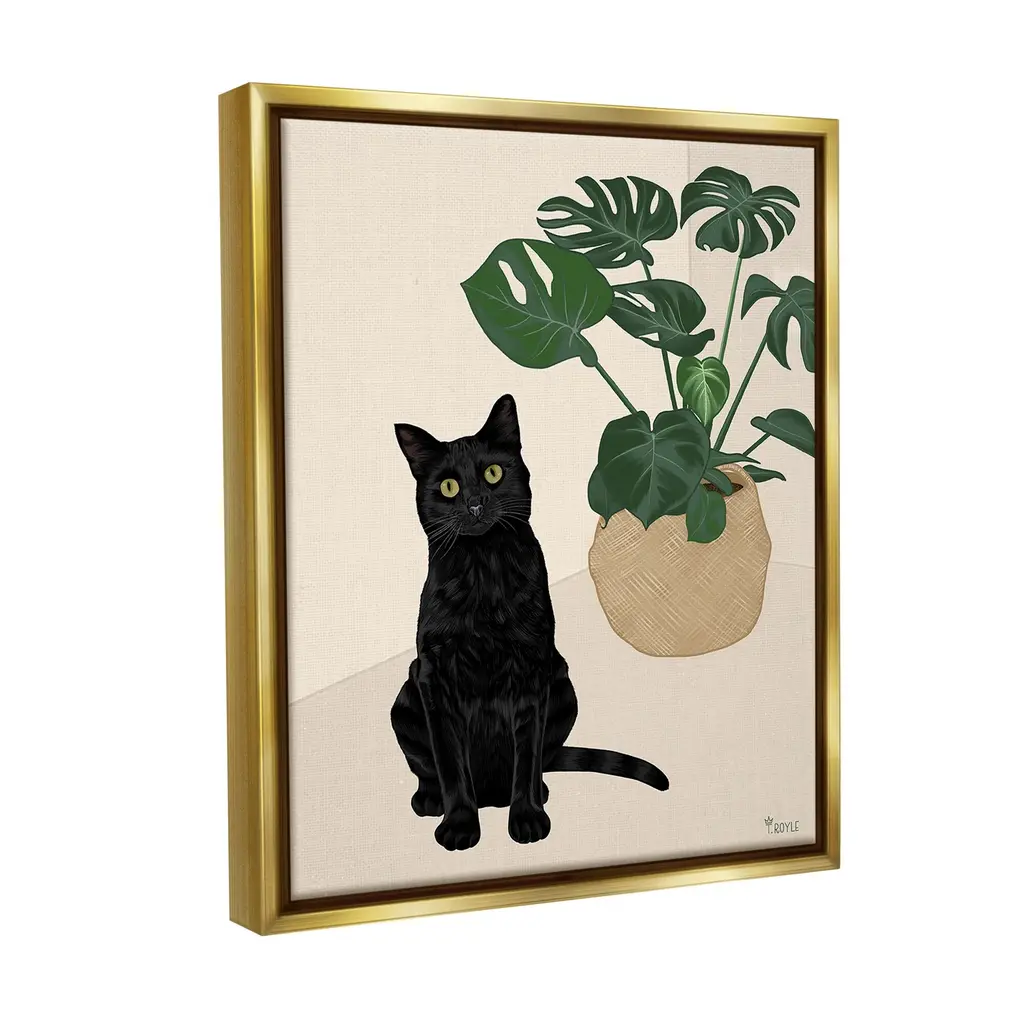Elevate your home or office to the next level with Stupell Framed Floating Canvas Wall Art. Our premium hand-stretched canvas is mounted securely into a sturdy lightweight frame. The museum-style gap between the wrapped canvas and the box frame gives the illusion of floating artwork. Stupell Wall Art is made in the USA.Features: Dimensions: 17 x 1.7 x 21 Frame, 16 x 1.5 x 20 Canvas ArtFloating Frame Canvas Products are available in sizes 17"x21" and 25"x31". All Floating Frame Canvas Products have a 1.7" Depth.Wall Art is Ready to Hang with Hardware Free Hanging. No Installation required. For Easy Set Up Lean or Layer Artwork on Shelf or Against Wall. Artwork is Permently Fixed into the Frame.Our elevated 1.7" Thick Floating Frame is the perfect complement to our canvas style Wall Art. We use only the highest quality inks in house with industry leading printing solutions. Canvas is hand stretched over a durable wood foundation and then mounted securly into a Modern Box Frame. Made in the USA.Artwork Relates To: Animal, Pet, Cat, Plant, Botanical, Monstera, House Plant, Black CatDesign by Tara Royle
