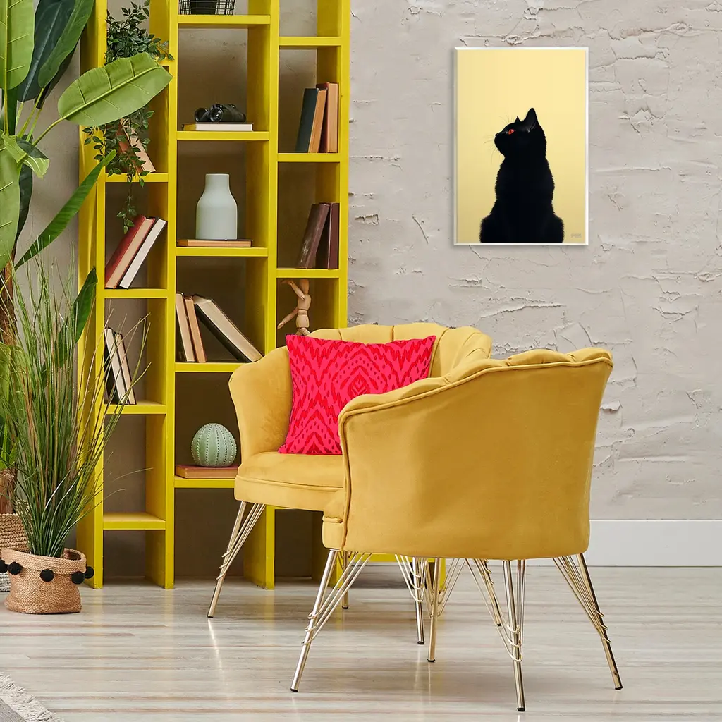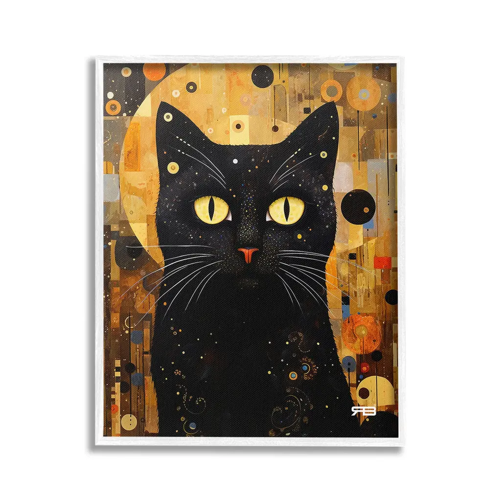 Stupell Black Cat On Yellow Wall Plaque Art Design By Roozbeh Bahramali - 13 X 19