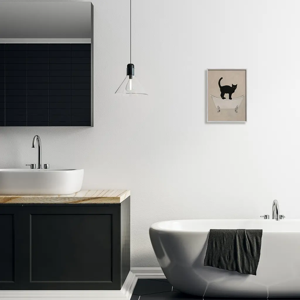 Stupell Black Cat Simple Claw Foot Bathtub Bathroom Painting Framed Wall Art - 11 X 14 - Grey