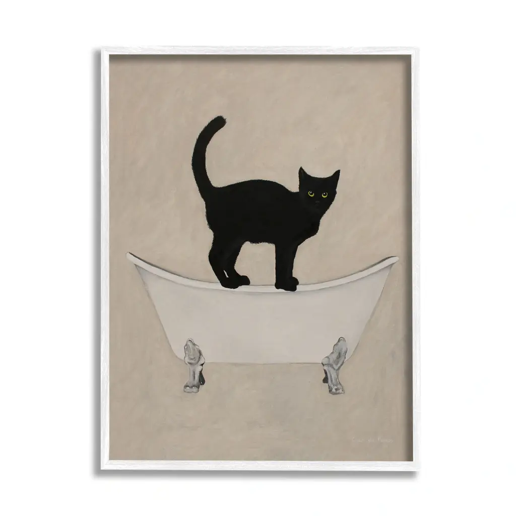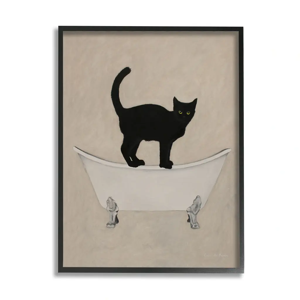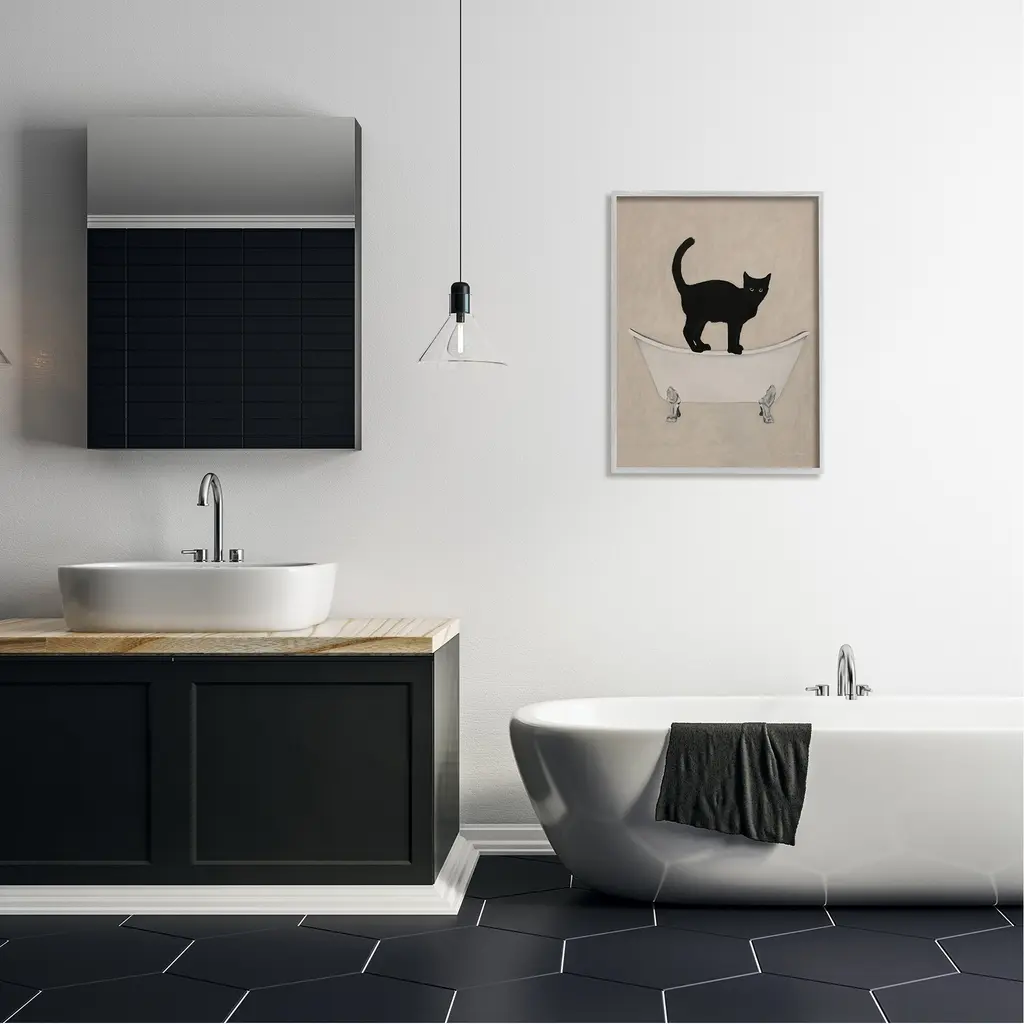Stupell Black Cat Simple Claw Foot Bathtub Bathroom Painting Framed Wall Art - 24 X 30 - Grey