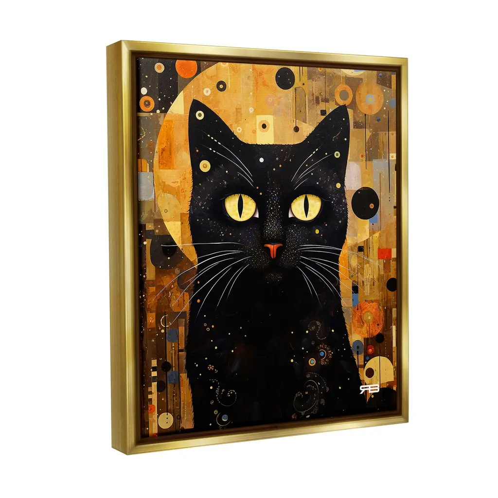 Elevate your home or office to the next level with Stupell Framed Floating Canvas Wall Art. Our premium hand-stretched canvas is mounted securely into a sturdy lightweight frame. The museum-style gap between the wrapped canvas and the box frame gives the illusion of floating artwork. Stupell Wall Art is made in the USA.Features: Dimensions: 17 x 1.7 x 21 Frame, 16 x 1.5 x 20 Canvas ArtFloating Frame Canvas Products are available in sizes 17"x21" and 25"x31". All Floating Frame Canvas Products have a 1.7" Depth.Wall Art is Ready to Hang with Hardware Free Hanging. No Installation required. For Easy Set Up Lean or Layer Artwork on Shelf or Against Wall. Artwork is Permently Fixed into the Frame.Our elevated 1.7" Thick Floating Frame is the perfect complement to our canvas style Wall Art. We use only the highest quality inks in house with industry leading printing solutions. Canvas is hand stretched over a durable wood foundation and then mounted securly into a Modern Box Frame. Made in the USA.Artwork Relates To: Modern, Animal, Cat, Mammal, Pet, Black Cat, Geometric, Pattern, RusticDesign by RB