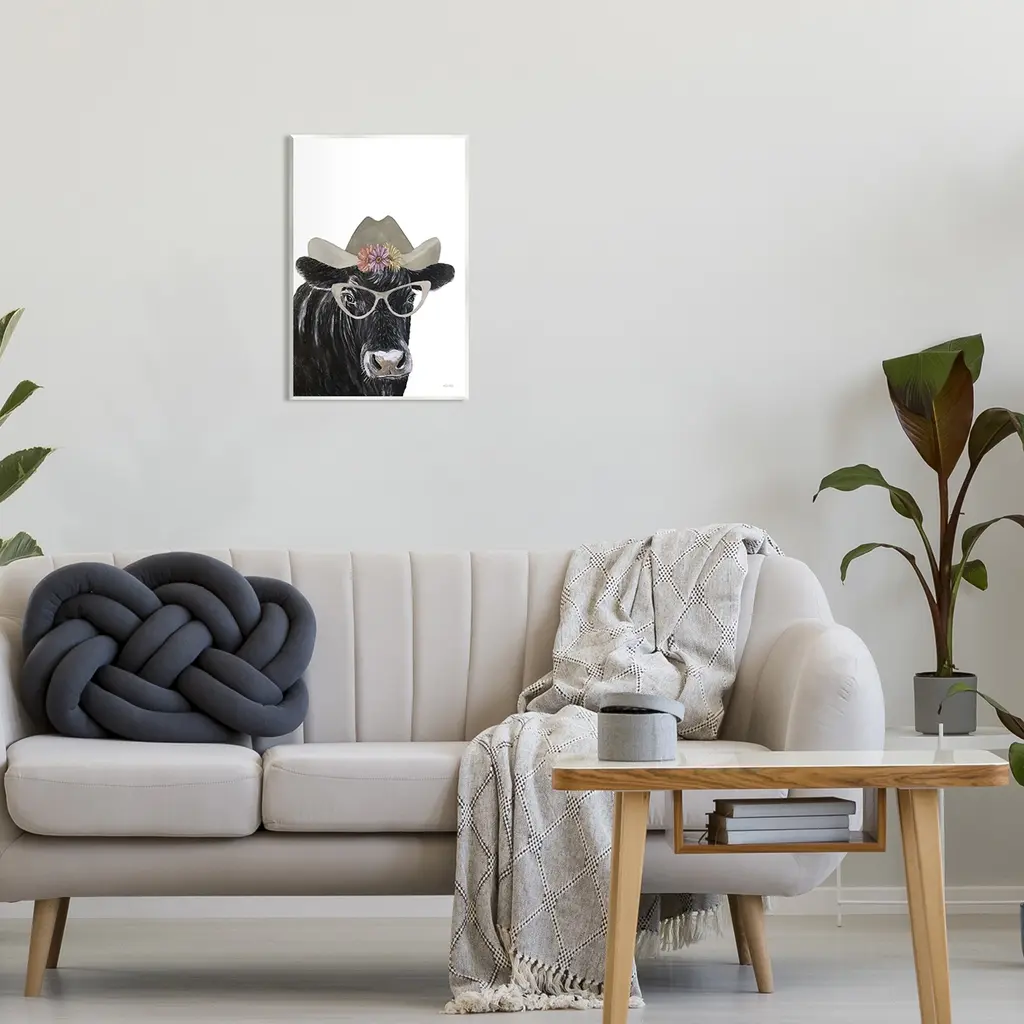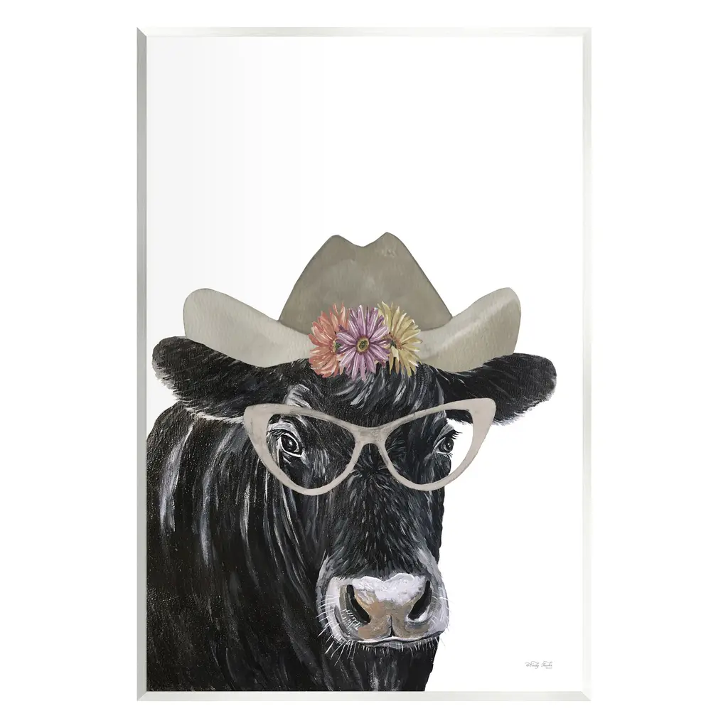 Stupell Black Cow In Floral Hat Wall Plaque Art Design By Cindy Jacobs - 13 X 19