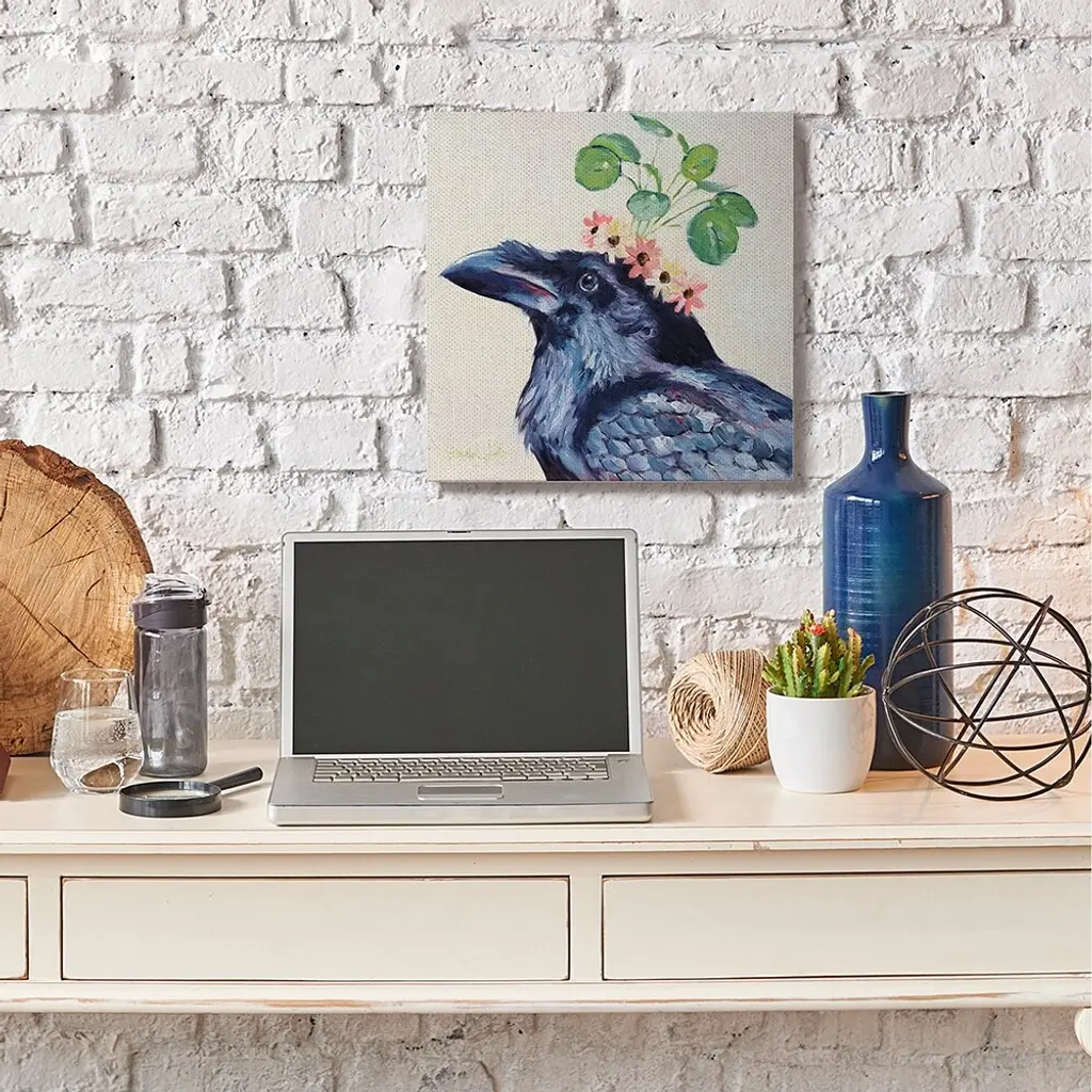 Stupell Black Crow With Bohemian Floral Crown Canvas Wall Art - 24 X 24