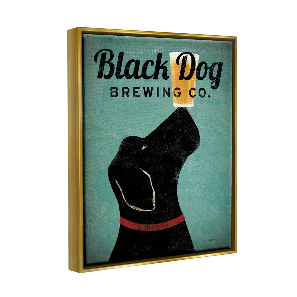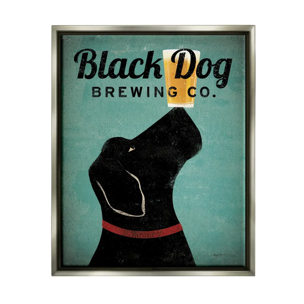 Stupell Black Dog Brewing Antique Beer Sign Floating Framed Canvas Wall Art, Design By Ryan Fowler - 17 X 21 - Grey