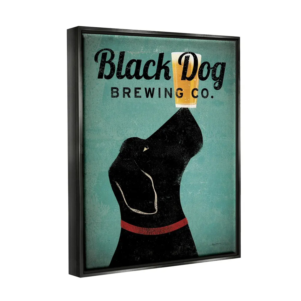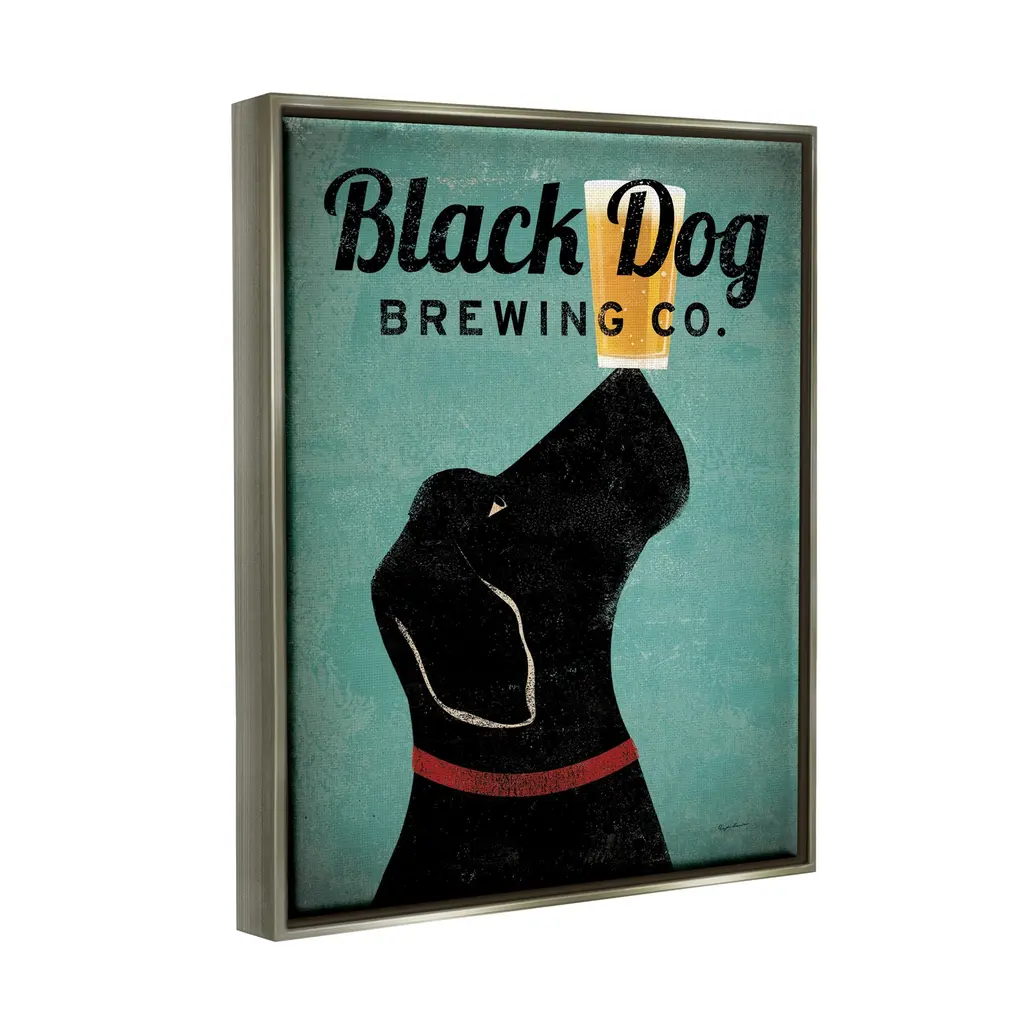Stupell Black Dog Brewing Antique Beer Sign Floating Framed Canvas Wall Art, Design By Ryan Fowler - 25 X 31 - Grey