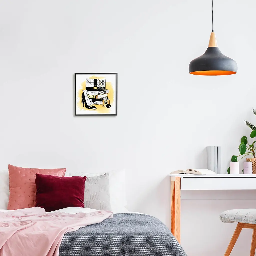 Add dimension to any room with our textured Framed Giclee Artwork. Our framed artwork is securely mounted into a 1.5-inch thick wood grain frame and ready to hang. Frames are available in three alluring styles: black, gray farmhouse and white. In addition, you should check out our oversized options if you want a statement piece. Stupell Wall Art is made in the USA.Features: Dimensions: 12 x 1.5 x 12 FramedFramed Giclee Sizes Include Standard: 12 x 1.5 x 12 Large: 17 x 1.5 x 17 Oversized: 24 x 1.5 x 24Wall Art is Ready to Hang - No Installation or Hardware Needed. For Easy Set Up Lean or Layer Artwork on Shelf or Against Wall.Our giclée prints are carefully mounted on a durable MDF backing, and then perfectly finished in a 1.5 inch thick woodgrain frame. Mounted frame colors include black, gray farmhouse and white. Made In USA.Artwork Relates To: Glam, Fashion, Books, Heels, Purse, PerfumeDesign by Martina Pavlova