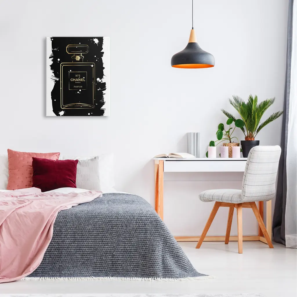 We create our stretched canvas to the highest standards. Using only the highest quality inks and canvas on Mimaki printers, we hand-cut and stretch each piece over a 1.5-inch thick wooden frame for hanging. As a result, the art comes ready to hang on the sturdy ledge with no installation required. Stupell Wall Art is made in the USA.Features: Dimensions: 16 x 1.5 x 20 InchesStretched Canvas Sizes Include Standard: 16 x 1.5 x 20 Large: 20 x 1.5 x 30 X-Large: 30 x 1.5 x 40 Oversized: 36 x 1.5 x 48Wall Art is Ready to Hang with Hardware Free Hanging. No installation required. For Easy Set Up Lean or Layer Artwork on Shelf or Against Wall.Our stretched canvas is created with the highest standards. We use only the highest quality inks and canvas on our in house Mimaki printers, and then hand cut and stretch each piece over a 1.5 inch thick wooden frame for hanging. Made In USA.Artwork Relates To: Perfume, Glam, FashionDesign by Martina Illustration