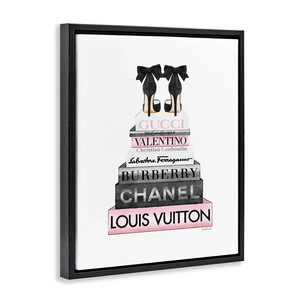 Stupell Black Heels Pink Bookstack Framed Floater Canvas Wall Art Design By Amanda Greenwood - 25 X 31 - Black