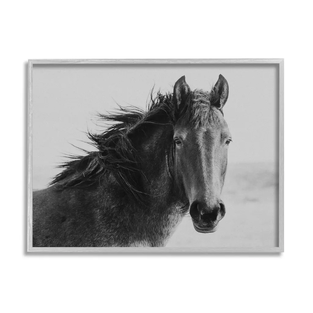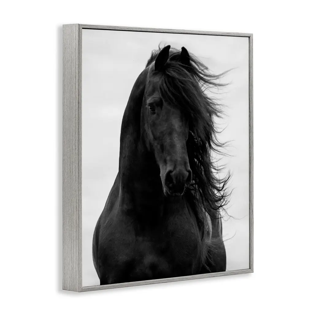 Stupell Black Stallion Horse Portrait Soft Grey Sky Photography Framed Wall Art - 11 X 14 - Grey