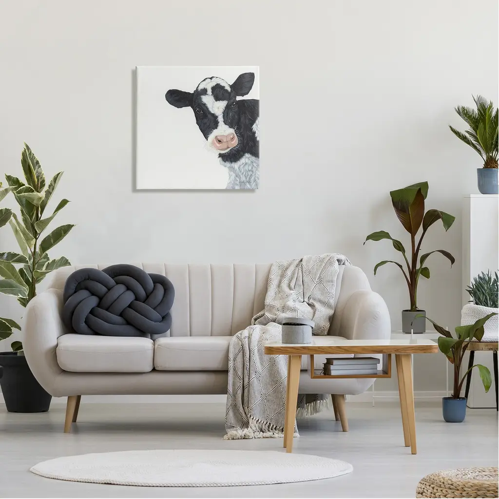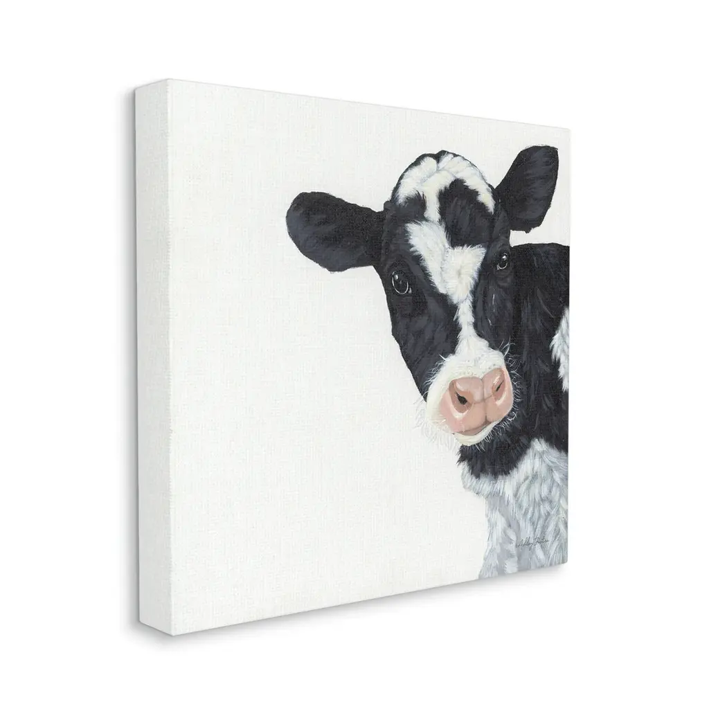 Stupell Black White Minimal Design Calf Cow Cattle Painting Canvas Wall Art - 24 X 24