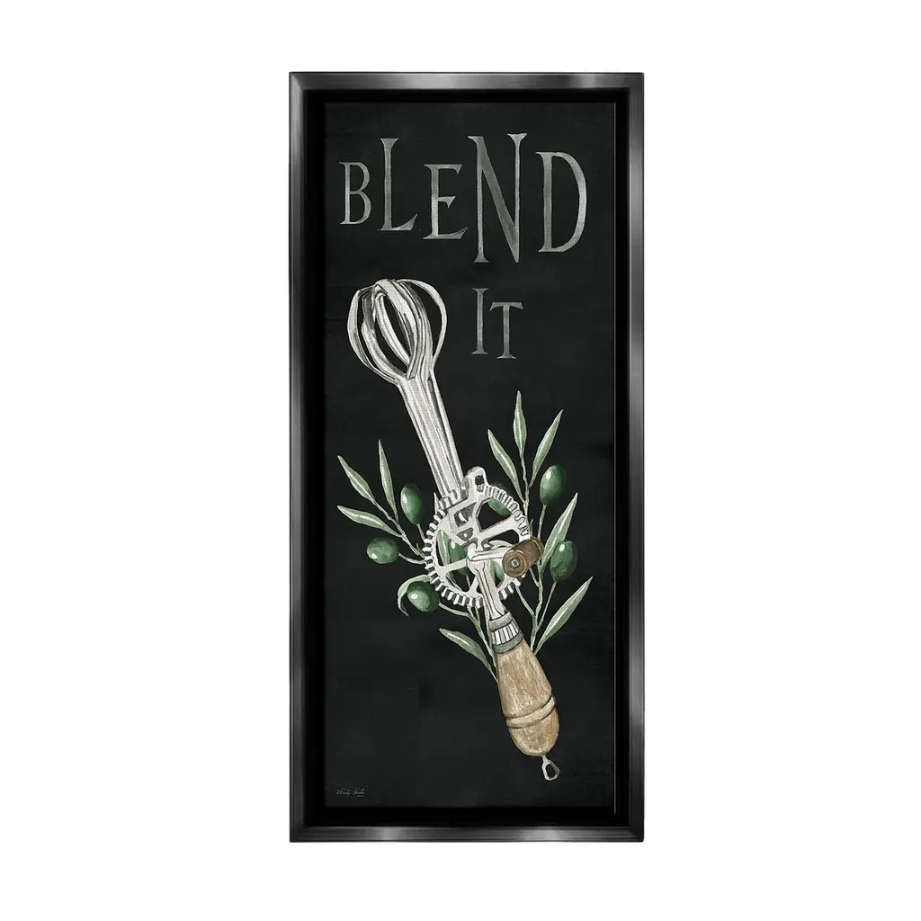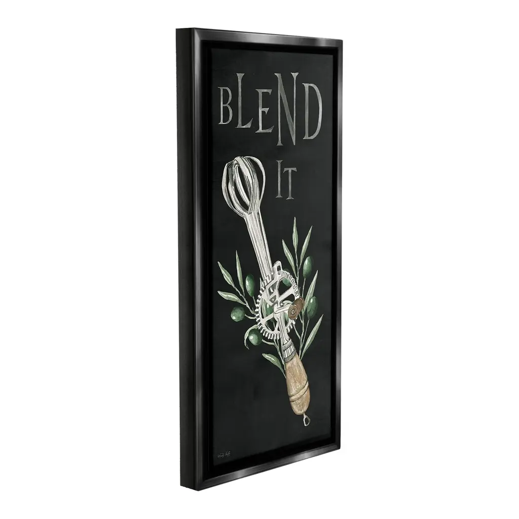 Elevate your home or office to the next level with Stupell Framed Floating Canvas Wall Art. Our premium hand-stretched canvas is mounted securely into a sturdy lightweight frame. The museum-style gap between the wrapped canvas and the box frame gives the illusion of floating artwork. Stupell Wall Art is made in the USA.Features: Dimensions: 11 x 1.7 x 25 Frame, 10 x 1.5 x 24 Canvas ArtFloating Frame Canvas Products are available in sizes 11"x25" and 14"x31". All Floating Frame Canvas Products have a 1.7" Depth.Wall Art is Ready to Hang with Hardware Free Hanging. No Installation required. For Easy Set Up Lean or Layer Artwork on Shelf or Against Wall. Artwork is Permently Fixed into the Frame.Our elevated 1.7" Thick Floating Frame is the perfect complement to our canvas style Wall Art. We use only the highest quality inks in house with industry leading printing solutions. Canvas is hand stretched over a durable wood foundation and then mounted securly into a Modern Box Frame. Made in the USA.Artwork Relates To: Kitchen, Utensil, Country, Rustic, Botanical, Plant, Leaf, Mixer, Blend ItDesign by Cindy Jacobs
