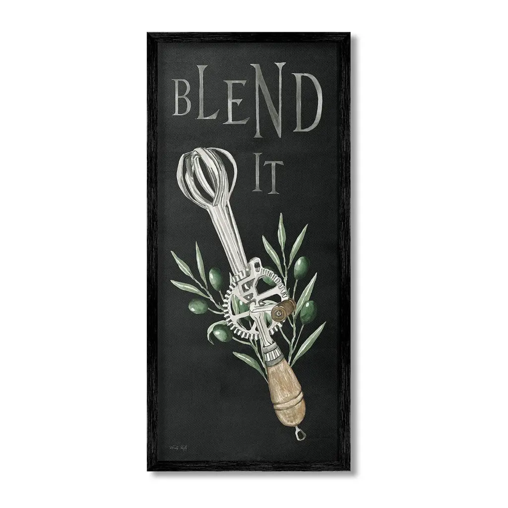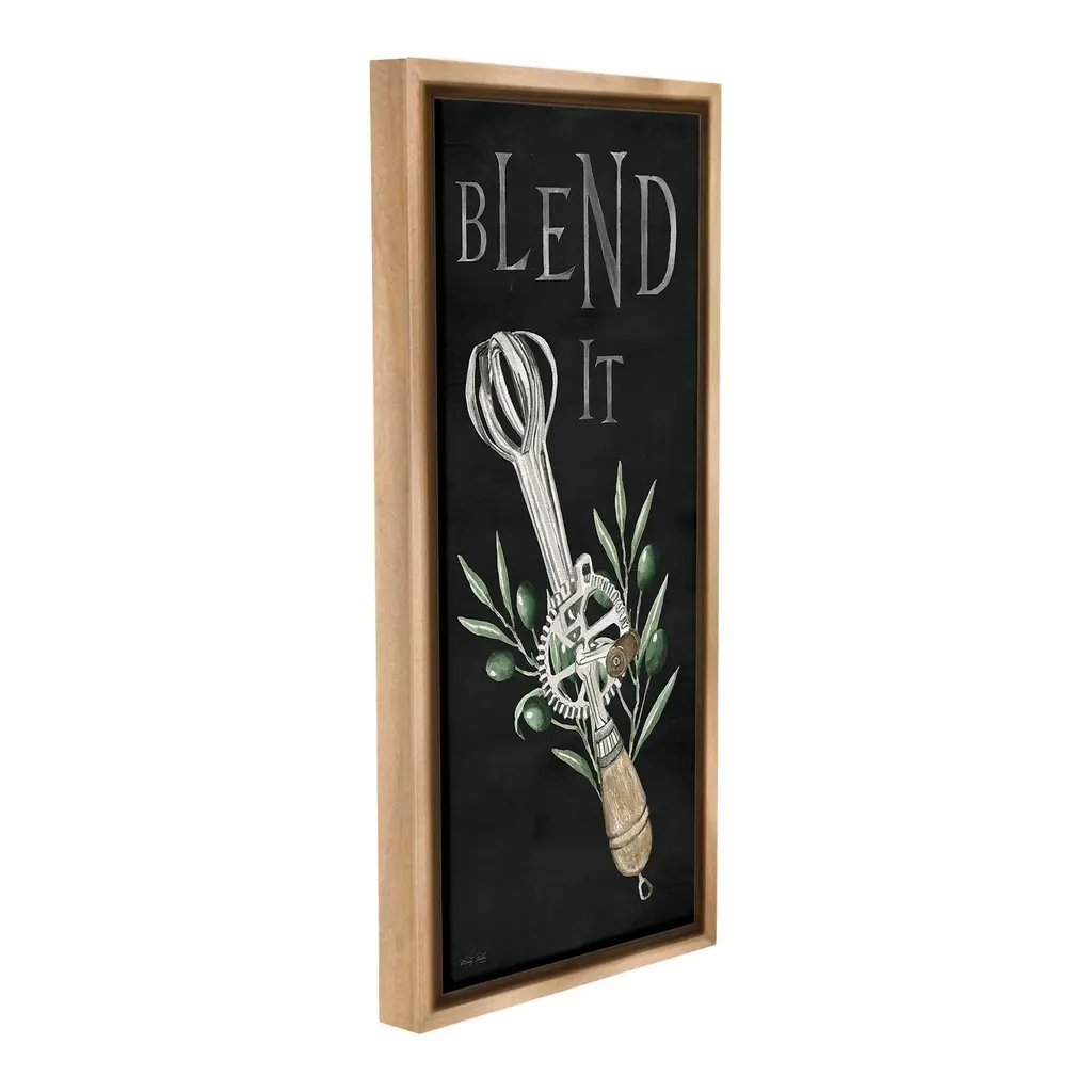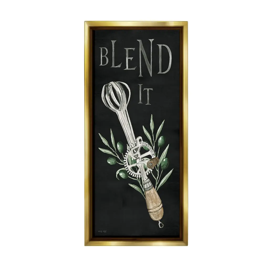 Elevate your home or office to the next level with Stupell Framed Floating Canvas Wall Art. Our premium hand-stretched canvas is mounted securely into a sturdy lightweight frame. The museum-style gap between the wrapped canvas and the box frame gives the illusion of floating artwork. Stupell Wall Art is made in the USA.Features: Dimensions: 11 x 1.7 x 25 Frame, 10 x 1.5 x 24 Canvas ArtFloating Frame Canvas Products are available in sizes 11"x25" and 14"x31". All Floating Frame Canvas Products have a 1.7" Depth.Wall Art is Ready to Hang with Hardware Free Hanging. No Installation required. For Easy Set Up Lean or Layer Artwork on Shelf or Against Wall. Artwork is Permently Fixed into the Frame.Our elevated 1.7" Thick Floating Frame is the perfect complement to our canvas style Wall Art. We use only the highest quality inks in house with industry leading printing solutions. Canvas is hand stretched over a durable wood foundation and then mounted securly into a Modern Box Frame. Made in the USA.Artwork Relates To: Kitchen, Utensil, Country, Rustic, Botanical, Plant, Leaf, Mixer, Blend ItDesign by Cindy Jacobs