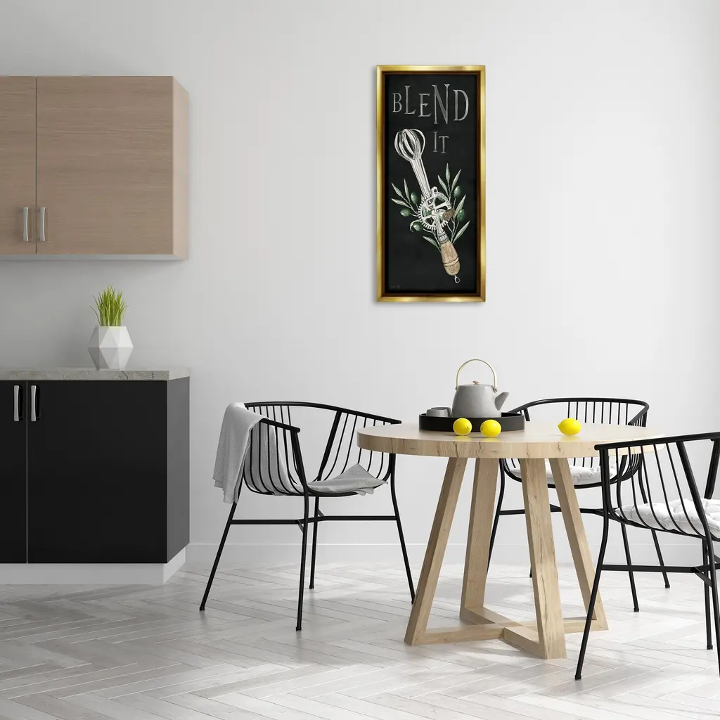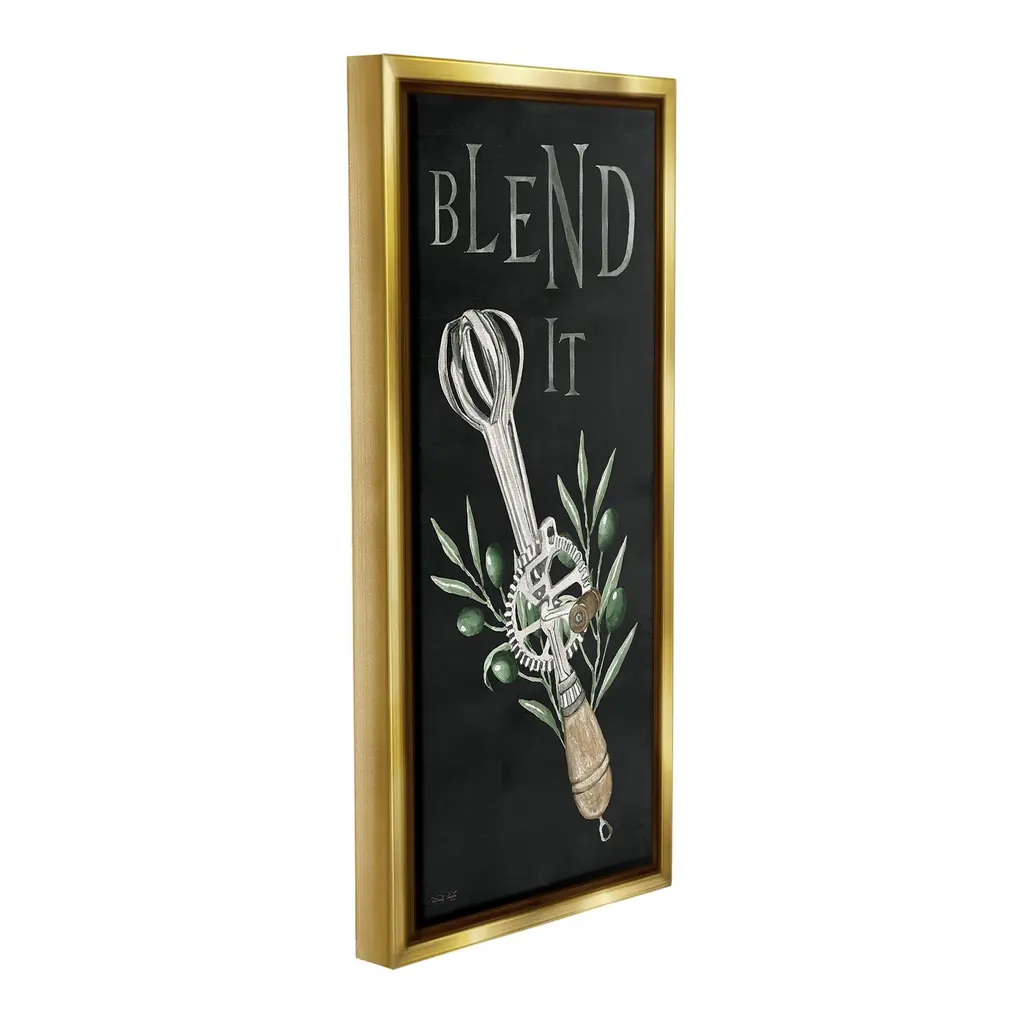 Elevate your home or office to the next level with Stupell Framed Floating Canvas Wall Art. Our premium hand-stretched canvas is mounted securely into a sturdy lightweight frame. The museum-style gap between the wrapped canvas and the box frame gives the illusion of floating artwork. Stupell Wall Art is made in the USA.Features: Dimensions: 11 x 1.7 x 25 Frame, 10 x 1.5 x 24 Canvas ArtFloating Frame Canvas Products are available in sizes 11"x25" and 14"x31". All Floating Frame Canvas Products have a 1.7" Depth.Wall Art is Ready to Hang with Hardware Free Hanging. No Installation required. For Easy Set Up Lean or Layer Artwork on Shelf or Against Wall. Artwork is Permently Fixed into the Frame.Our elevated 1.7" Thick Floating Frame is the perfect complement to our canvas style Wall Art. We use only the highest quality inks in house with industry leading printing solutions. Canvas is hand stretched over a durable wood foundation and then mounted securly into a Modern Box Frame. Made in the USA.Artwork Relates To: Kitchen, Utensil, Country, Rustic, Botanical, Plant, Leaf, Mixer, Blend ItDesign by Cindy Jacobs