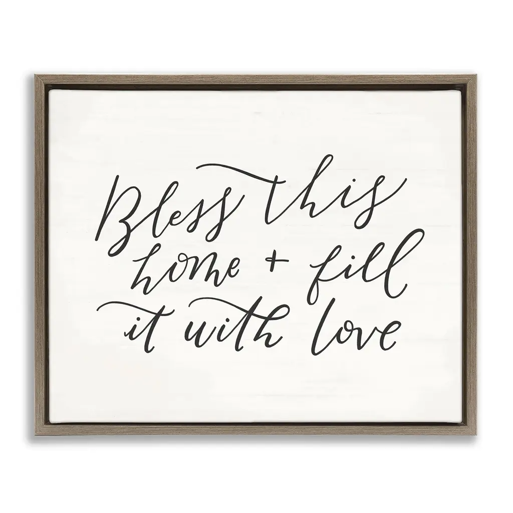 Stupell Bless This Home Typography Framed Floater Canvas Wall Art Design By Loni Harris - 31 X 25 - Grey