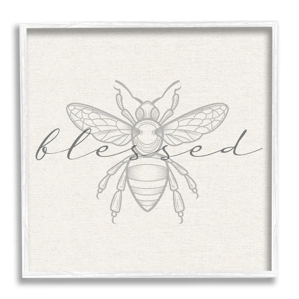 Add dimension to any room with our textured Framed Giclee Artwork. Our framed artwork is securely mounted into a 1.5-inch thick wood grain frame and ready to hang. Frames are available in three alluring styles: black, gray farmhouse and white. In addition, you should check out our oversized options if you want a statement piece. Stupell Wall Art is made in the USA.Features: Dimensions: 12 x 1.5 x 12 FramedFramed Giclee Sizes Include Standard: 12 x 1.5 x 12 Large: 17 x 1.5 x 17 Oversized: 24 x 1.5 x 24Wall Art is Ready to Hang - No Installation or Hardware Needed. For Easy Set Up Lean or Layer Artwork on Shelf or Against Wall.Our giclée prints are carefully mounted on a durable MDF backing, and then perfectly finished in a 1.5 inch thick woodgrain frame. Mounted frame colors include black, gray farmhouse and white. Made In USA.Artwork Relates To: Animal, Bee, Insect, Invertebrate, BlessedDesign by Lil' Rue