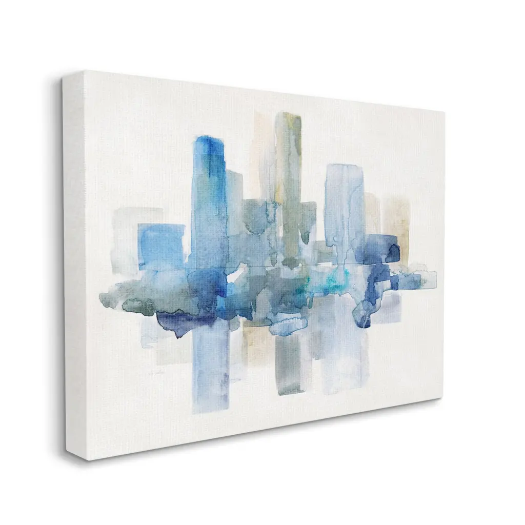 Stupell Blocked Abstract Cityscape Scene Reflection Watercolor Detail Canvas Wall Art, Design By Sally Swatland - 30 X 24